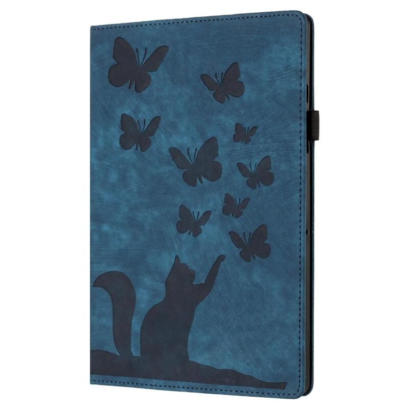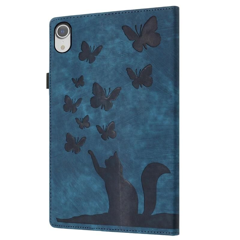 For iPad mini 2024 / 2021 Butterfly Cat Embossing Leather Tablet Case(Dark Blue)