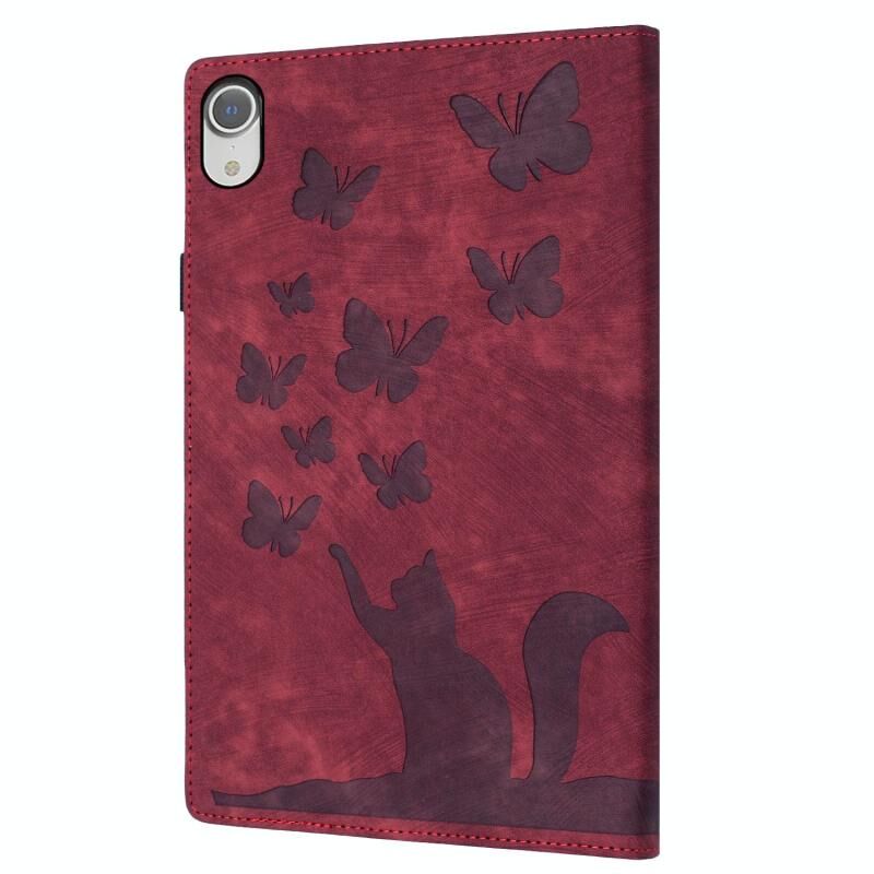 For iPad mini 2024 / 2021 Butterfly Cat Embossing Leather Tablet Case(Red)