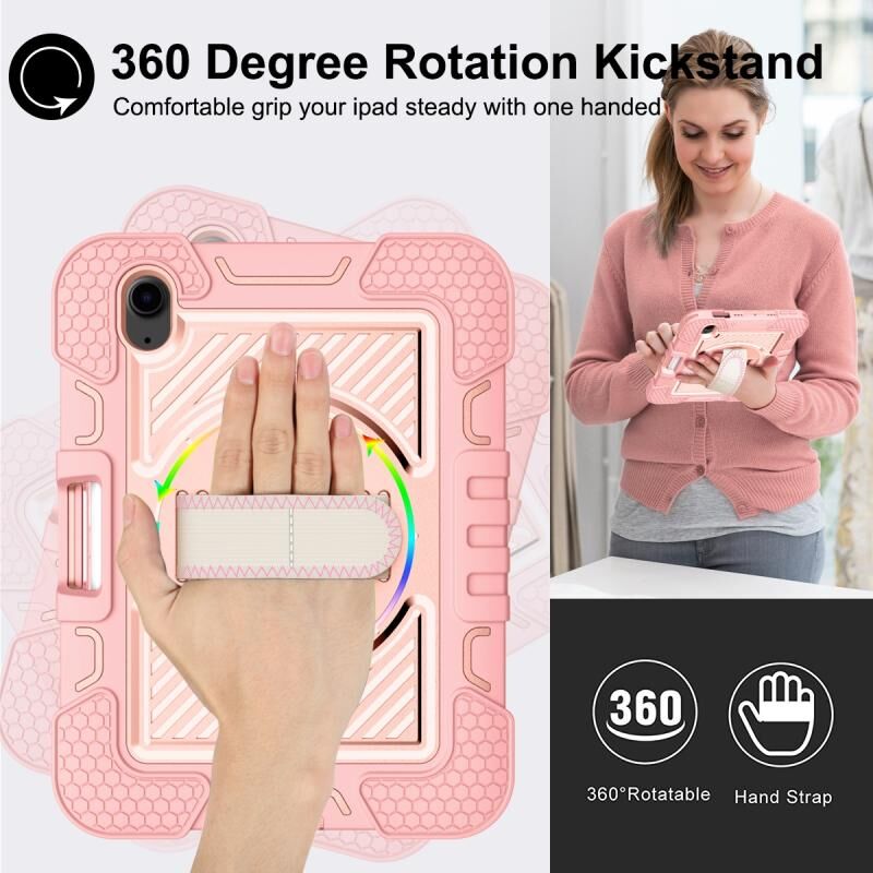 For iPad mini 2024 / mini 6 360 Degree Rotation Contrast Color Shockproof Silicone + PC Tablet Case with Holder & Hand Grip Strap & Shoulder Strap(Rose Gold)