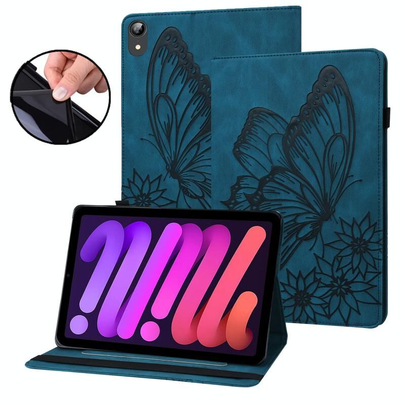 For iPad mini 2024 / mini 6 Big Butterfly Embossed Smart Leather Tablet Case(Blue)