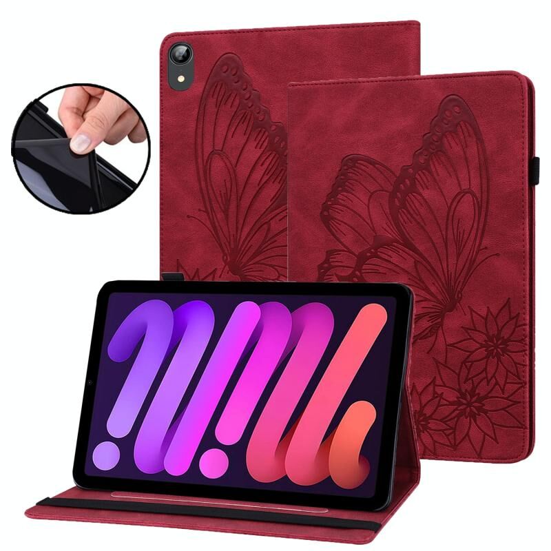 For iPad mini 2024 / mini 6 Big Butterfly Embossed Smart Leather Tablet Case(Red)