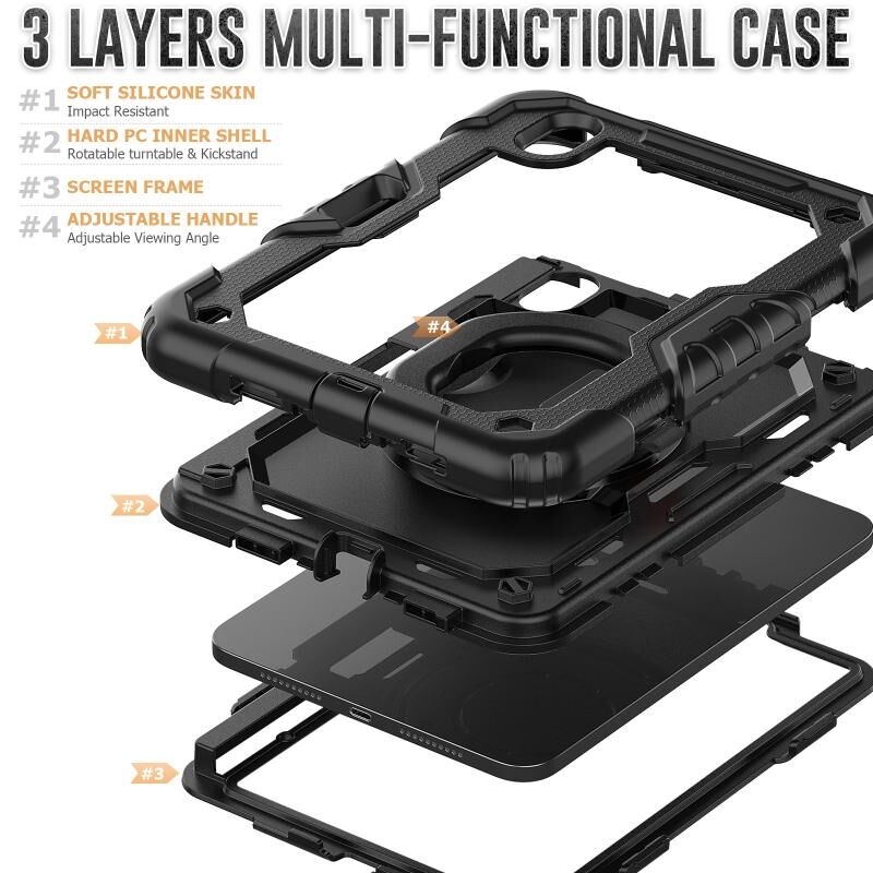 Για iPad mini 2024 / mini 6 Βραχιόλι Στήριξης + Θήκη Ταμπλέτας από Σιλικόνη + PC (Μαύρο)