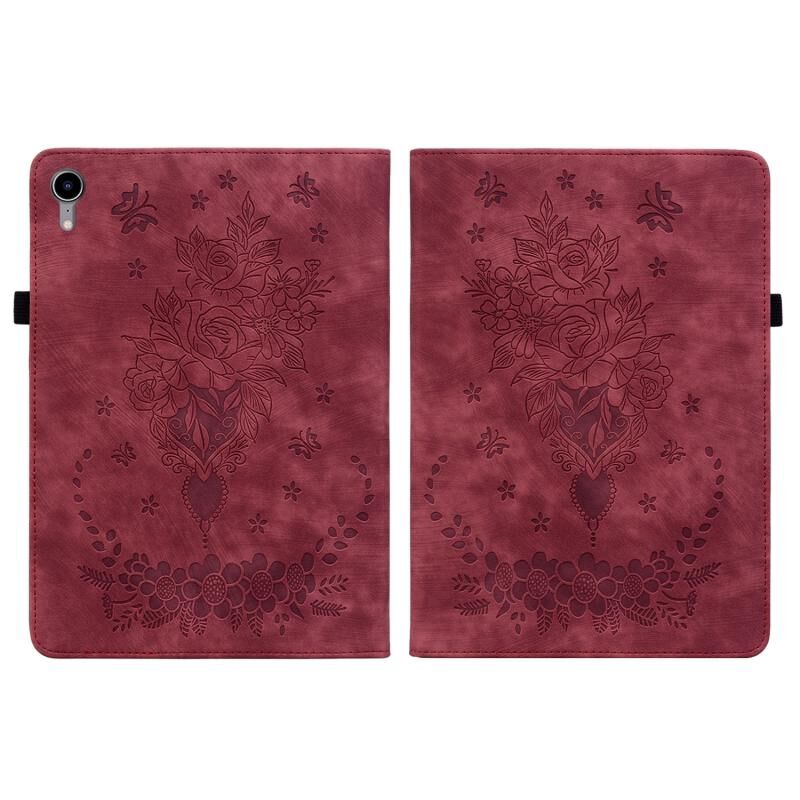 For iPad mini 2024 / mini 6 Butterfly Rose Embossed Leather Smart Tablet Case(Red)