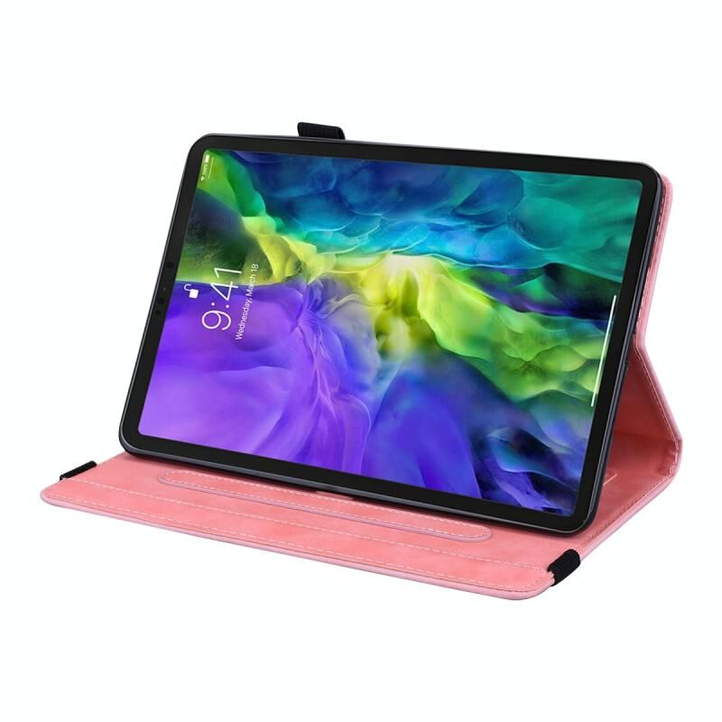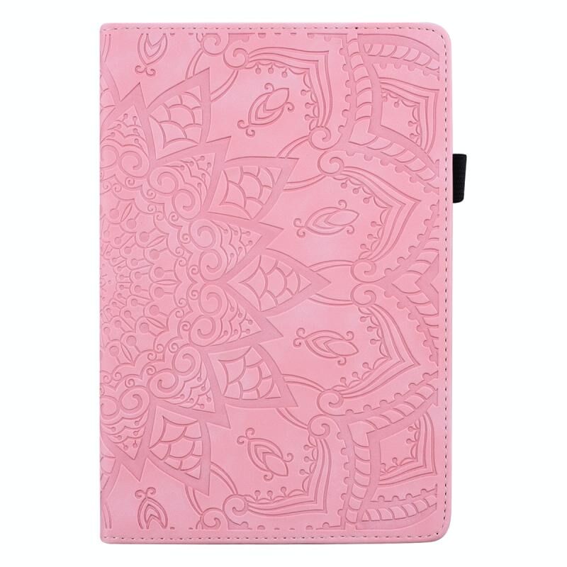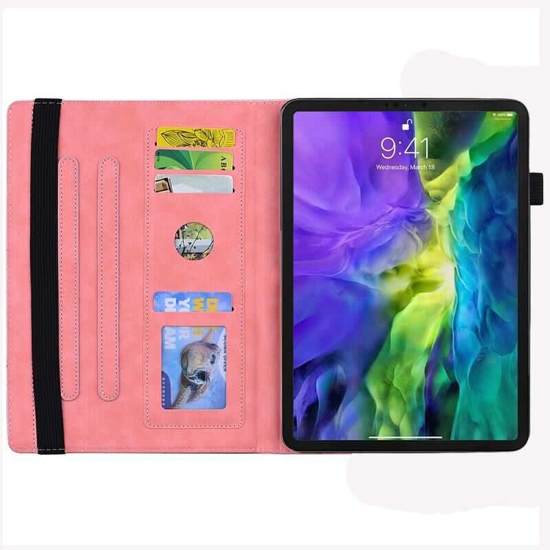 For iPad mini 2024 / mini 6 Calf Pattern Double Folding Design Embossed Leather Tablet Case with Holder & Card Slots & Pen Slot & Elastic Band(Pink)