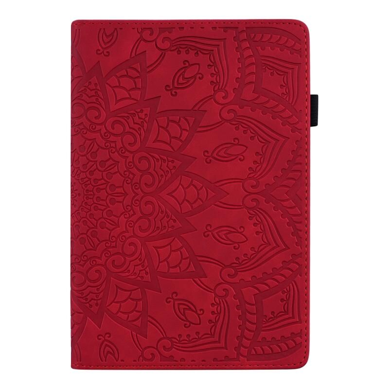 For iPad mini 2024 / mini 6 Calf Pattern Double Folding Design Embossed Leather Tablet Case with Holder & Card Slots & Pen Slot & Elastic Band(Red)
