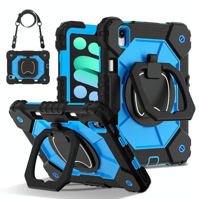 For iPad mini 2024 / mini 6 Contrast Color Robot Silicone Hybrid PC Tablet Case(Black Blue)