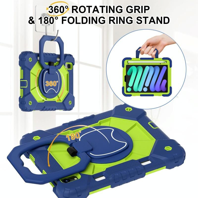 For iPad mini 2024 / mini 6 Contrast Color Robot Silicone Hybrid PC Tablet Case(Navy Yellow Green)