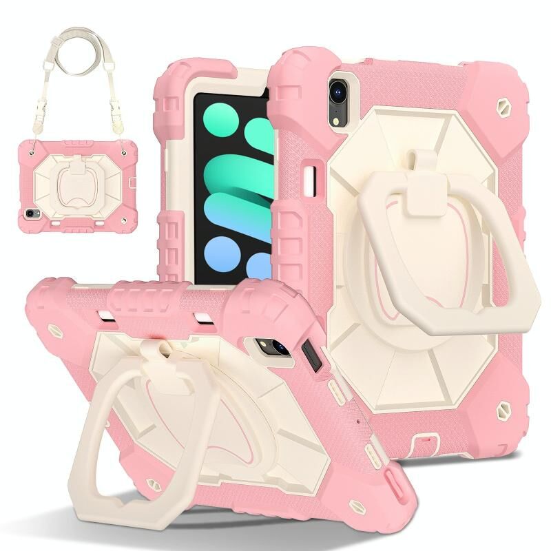 For iPad mini 2024 / mini 6 Contrast Color Robot Silicone Hybrid PC Tablet Case(Rose Gold Beige)
