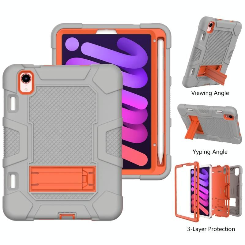 For iPad mini 2024 / mini 6 Contrast Color Robot Silicone + PC Tablet Case(Grey Orange)
