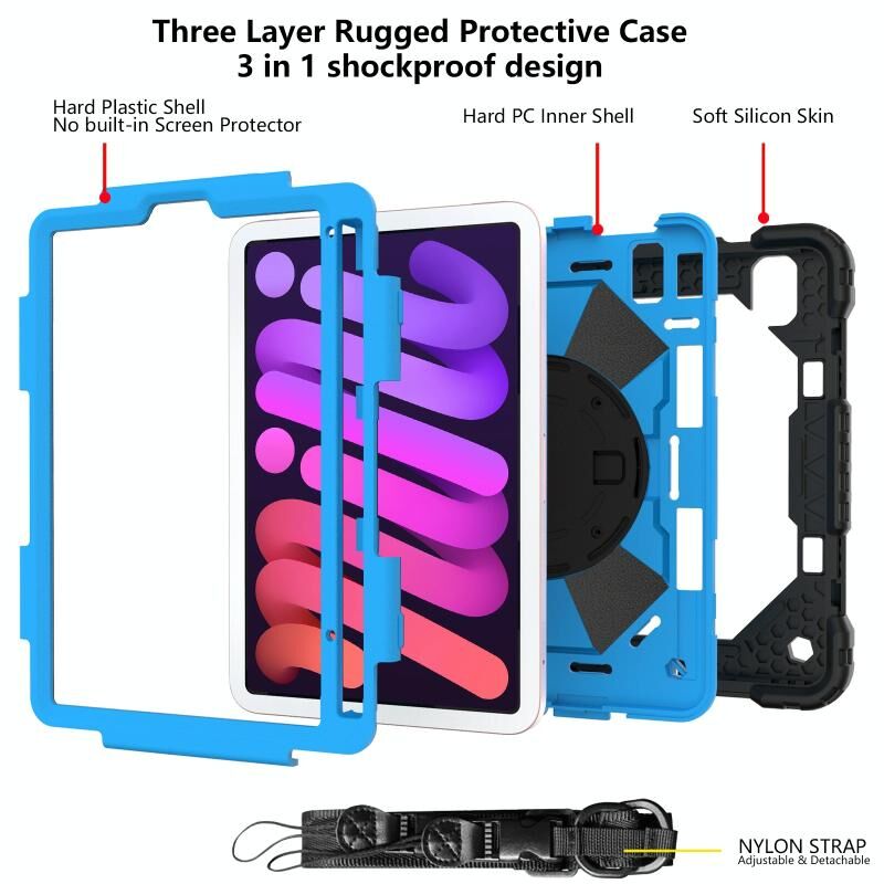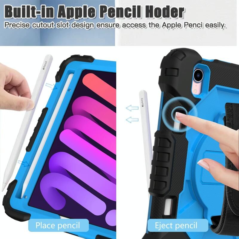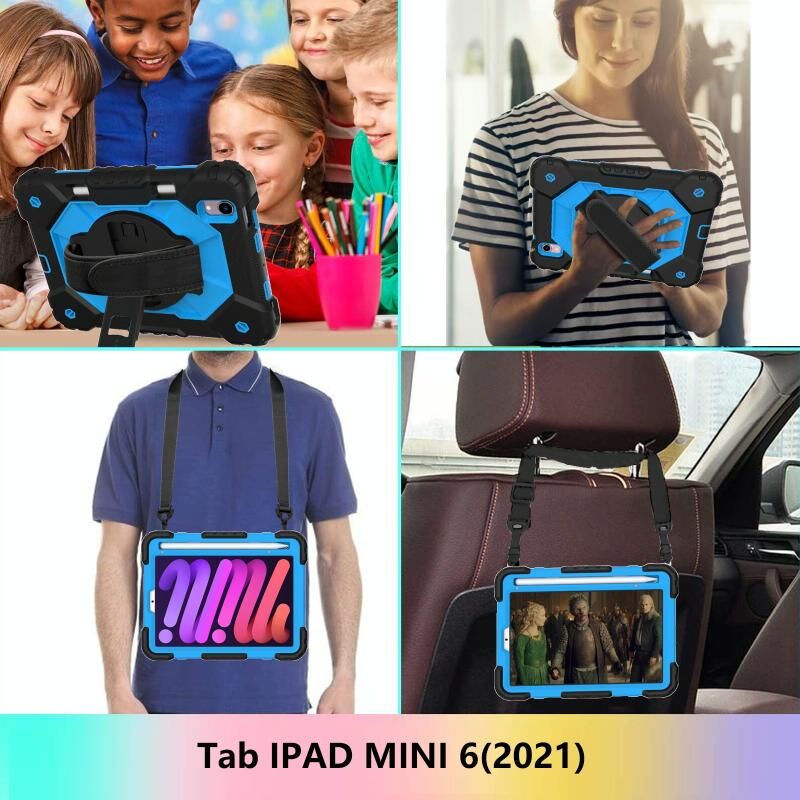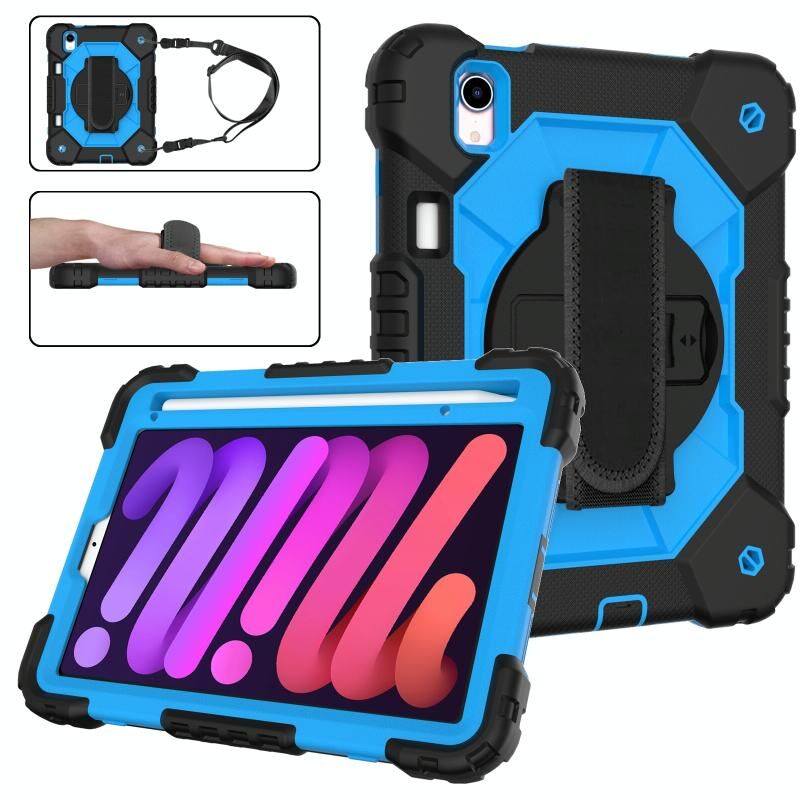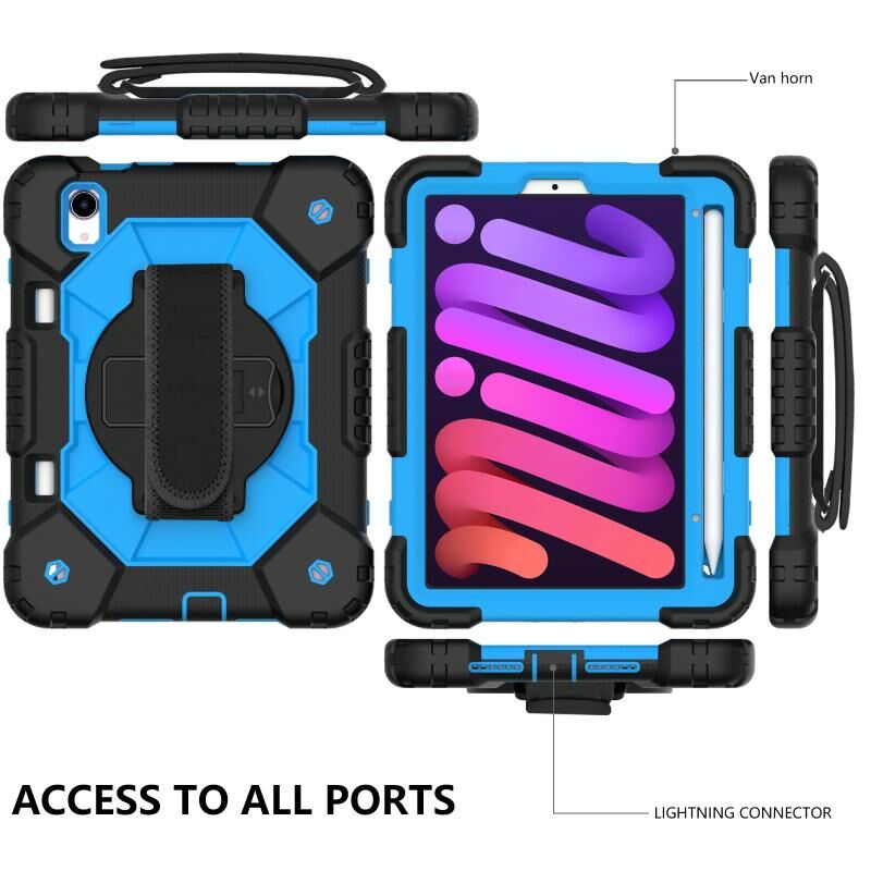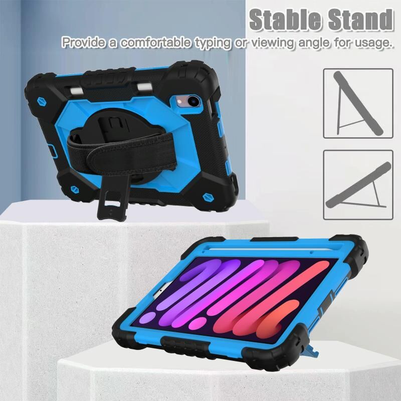 For iPad mini 2024 / mini 6 Contrast Color Robot Silicone + PC Tablet Case with Shoulder Strap(Black+Blue)