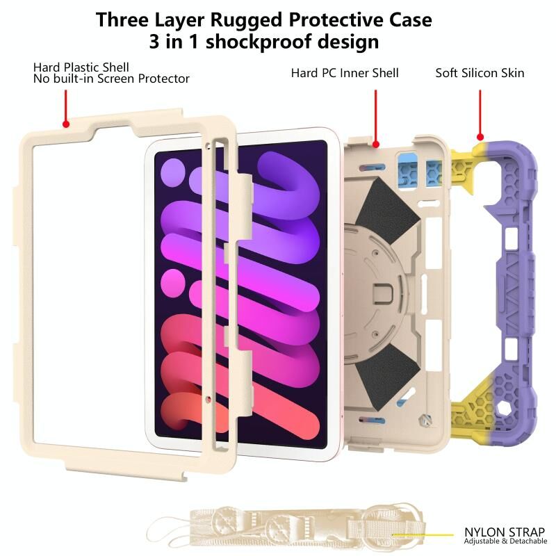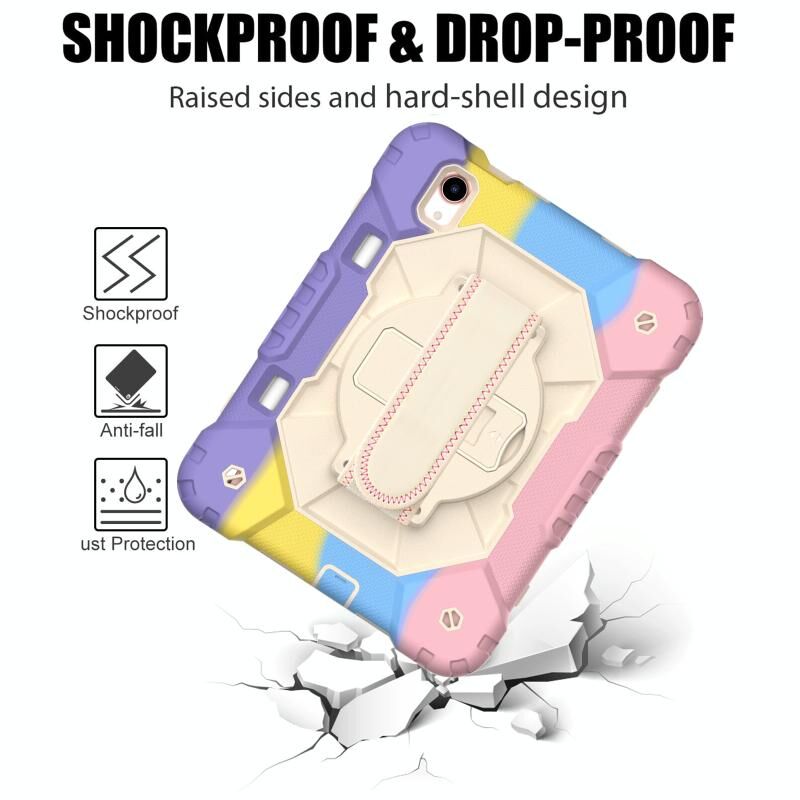 For iPad mini 2024 / mini 6 Contrast Color Robot Silicone + PC Tablet Case with Shoulder Strap(Colorful Pink)