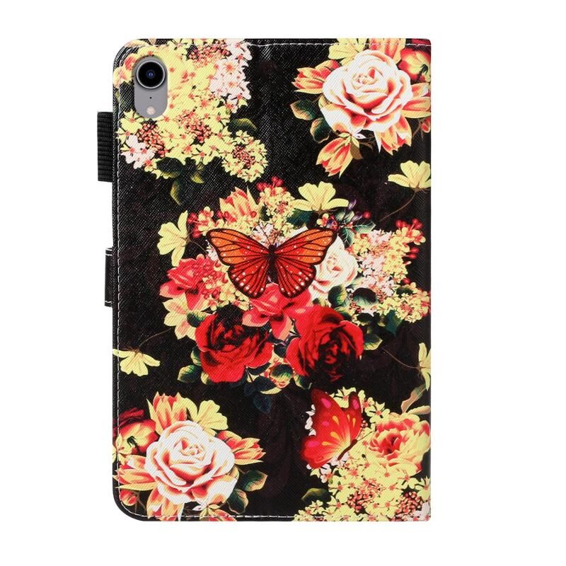 For iPad mini 2024 / mini 6 Cross Texture Painted Smart Leather Tablet Case(Black Peonies)