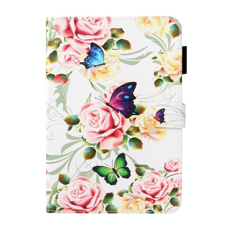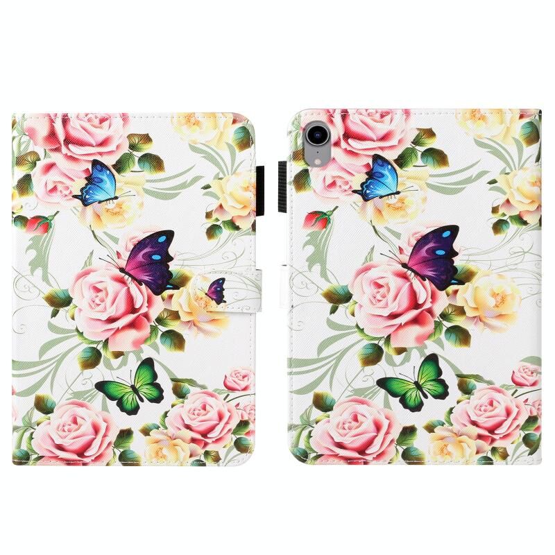 For iPad mini 2024 / mini 6 Cross Texture Painted Smart Leather Tablet Case(White Peony)