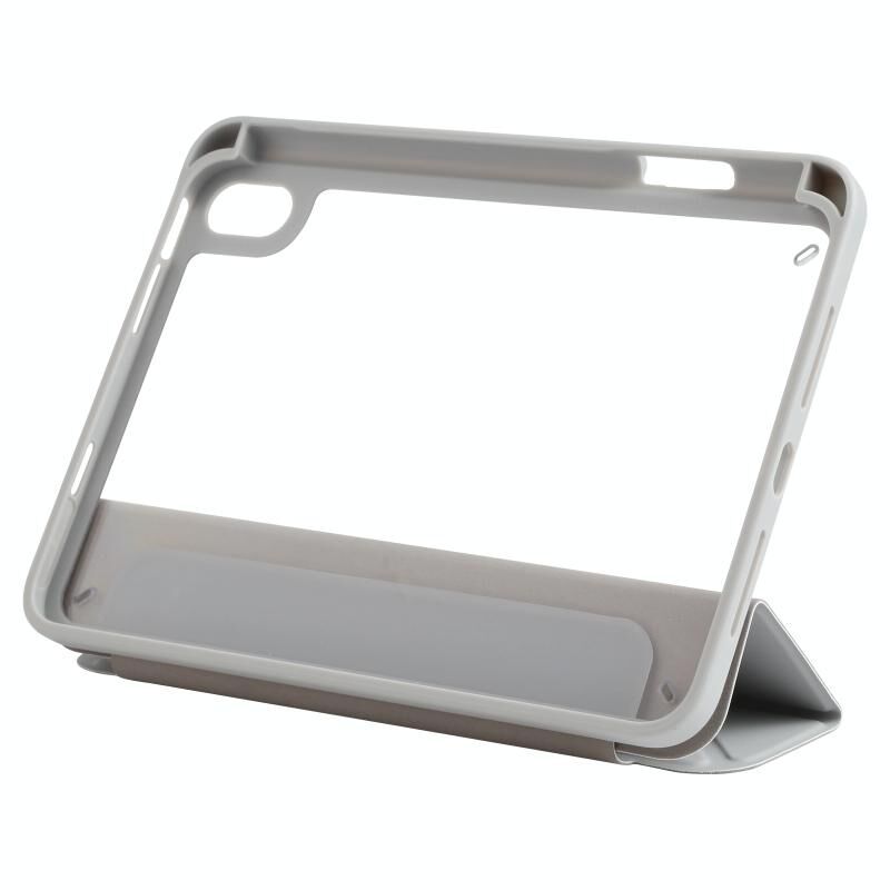 For iPad mini 2024 / mini 6 Deformation Transparent Acrylic Horizontal Flip PU Leather Tablet Case with Multi-folding Holder & Sleep / Wake-up Function & Pen Slot(Grey)