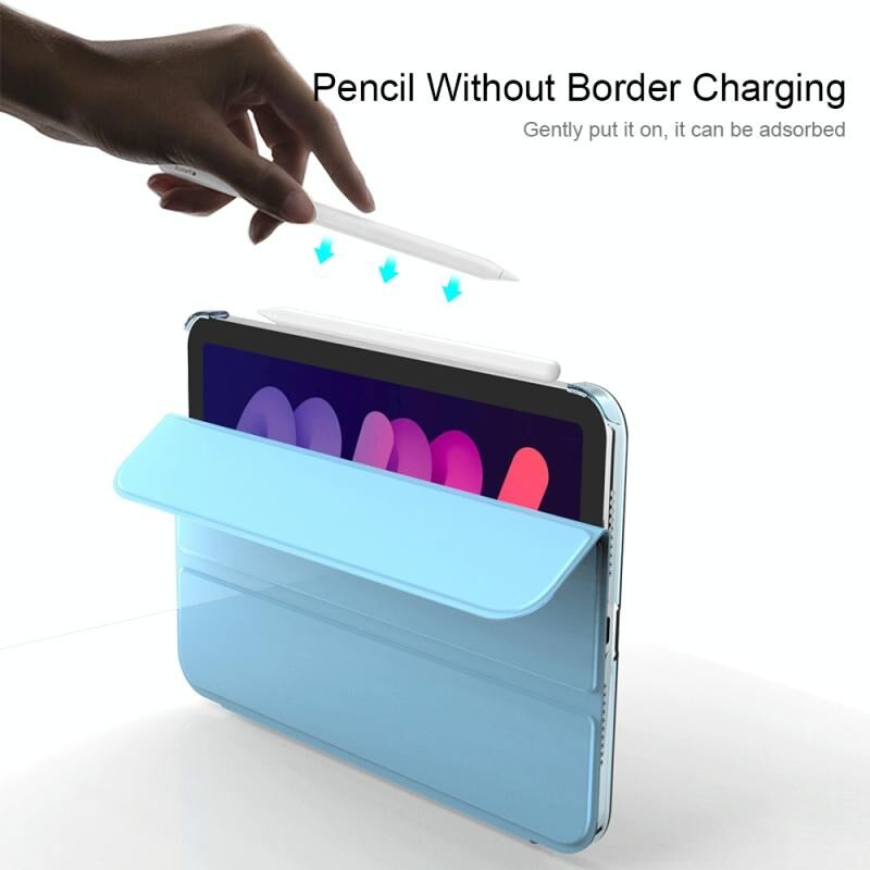 Θήκη για iPad mini 2024 / mini 6 Διπλής Όψης Ματ Ημιδιαφανές Δερμάτινο Υλικό PC με Στήριξη 3 Διπλώσεων & Λειτουργία Αφύπνισης / Ύπνου (Γκρι)
