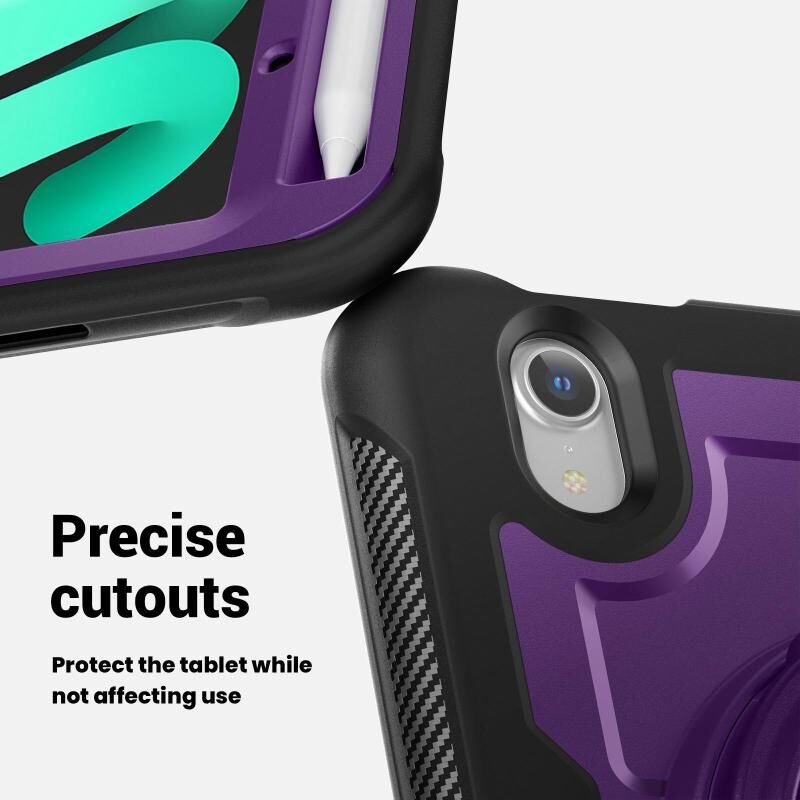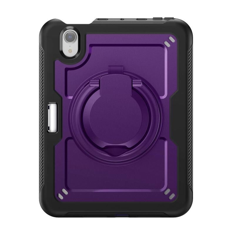 For iPad mini 2024 / mini 6 Honeycomb Hybrid Tablet Case with Handle Holder & Strap(Purple)