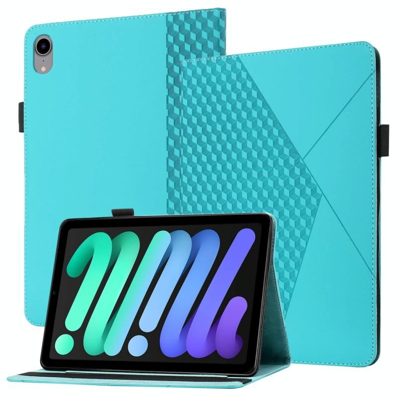 For iPad mini 2024 / mini 6 Rhombus Skin Feel Horizontal Flip Tablet Case with Card Slots & Holder & Sleep / Wake-up Function(Lake Blue)