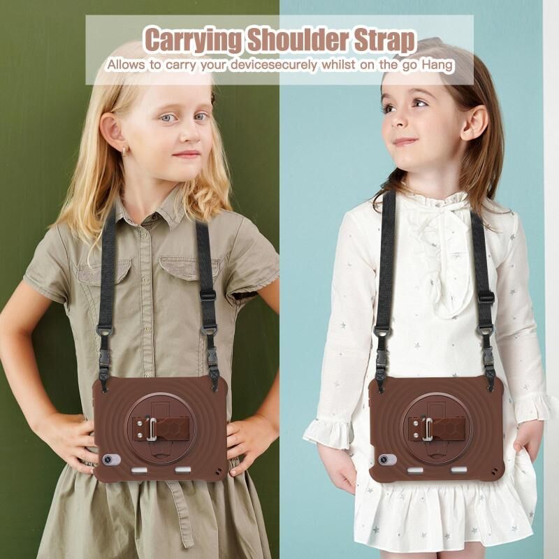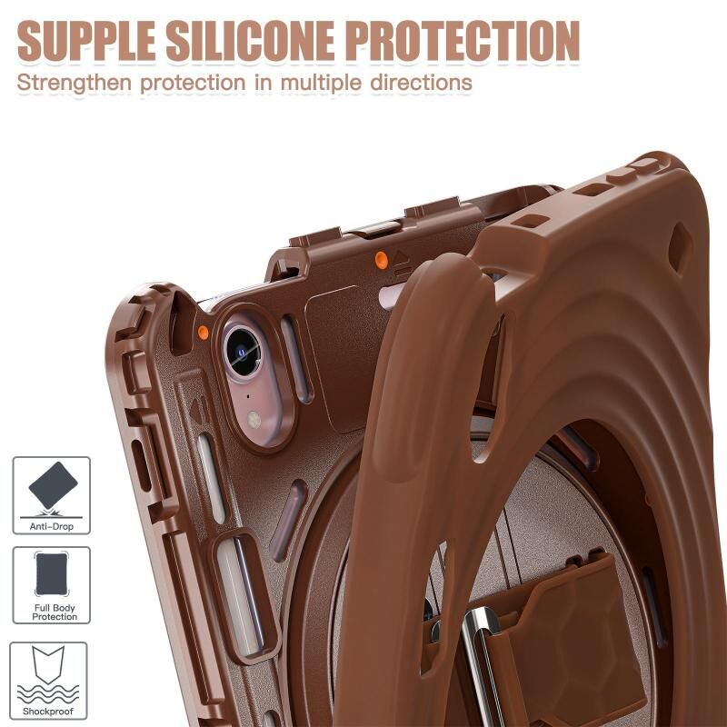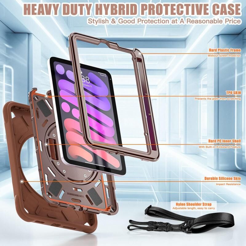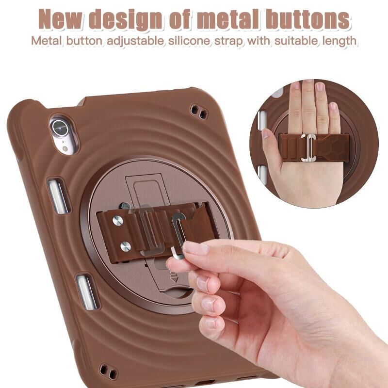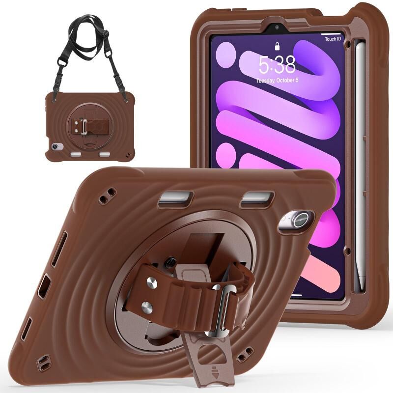 For iPad mini 2024 / mini 6 Rotation Holder Silicone Hybrid PC Tablet Case(Chocolate)