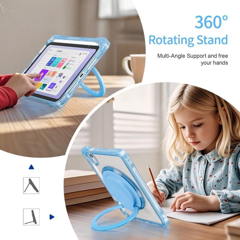 For iPad mini 2024 / mini 6 Rotation Ring Handle TPU Hybrid Clear PC Tablet Case(Light Blue)
