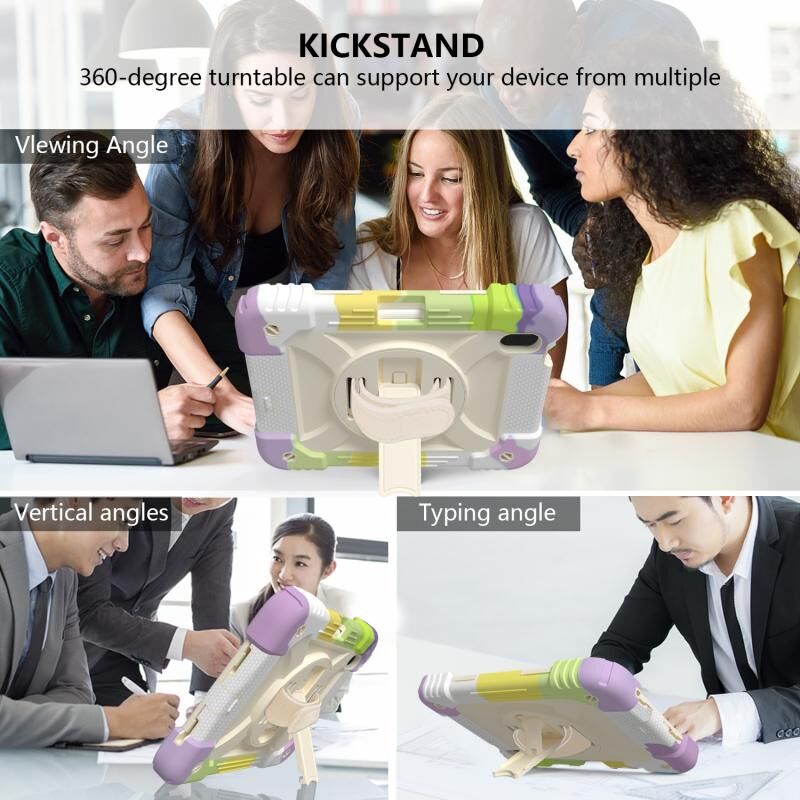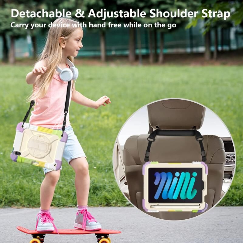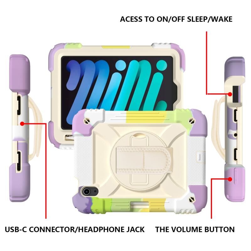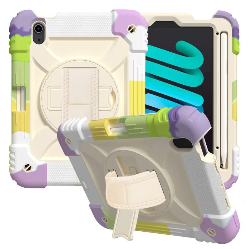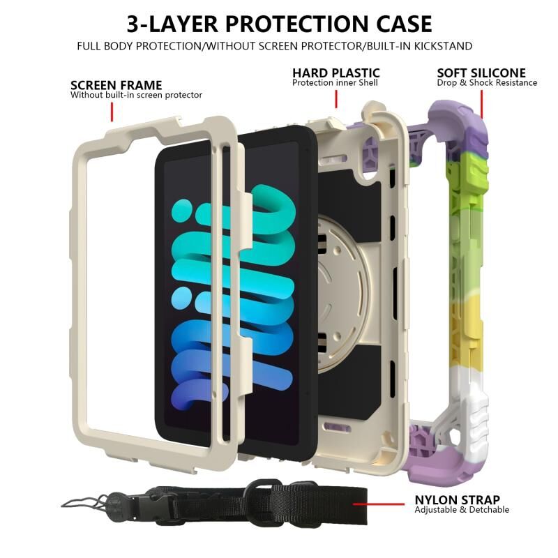 For iPad mini 2024 / mini 6 Shockproof PC + Silicone Combination Tablet Case with Holder & Hand Strap & Shoulder Strap(Colorful Beige)