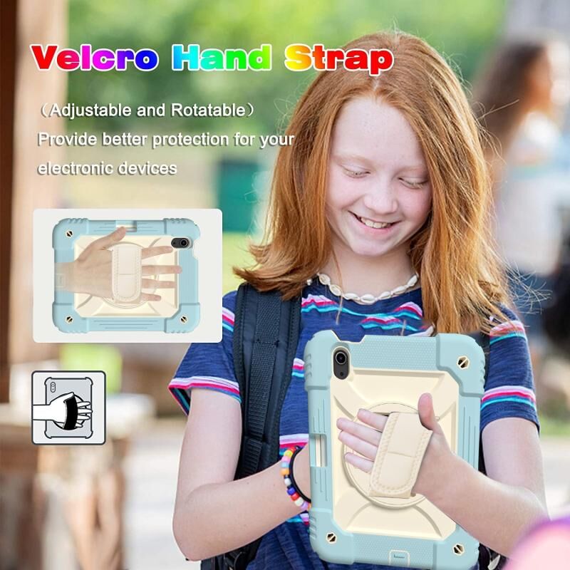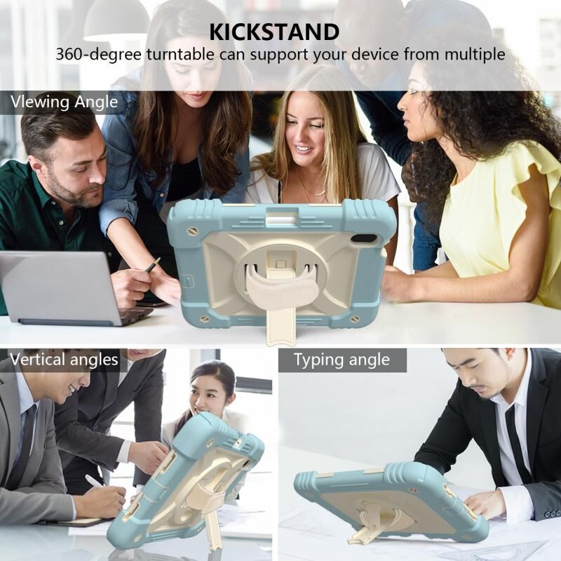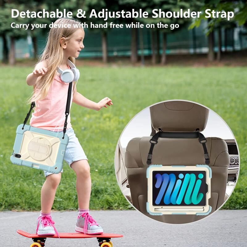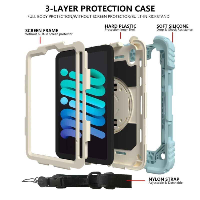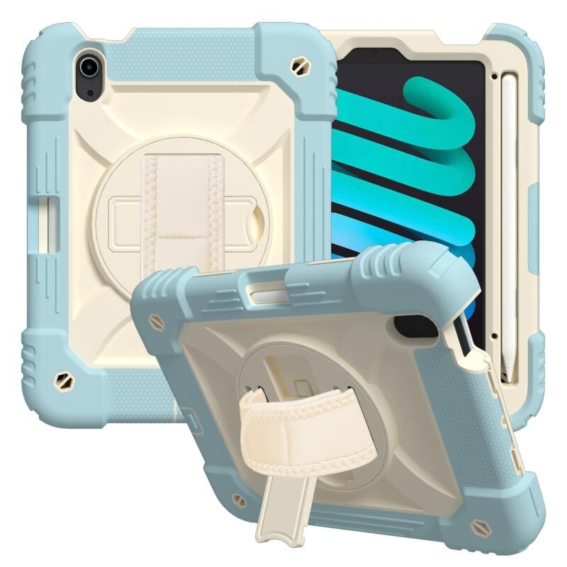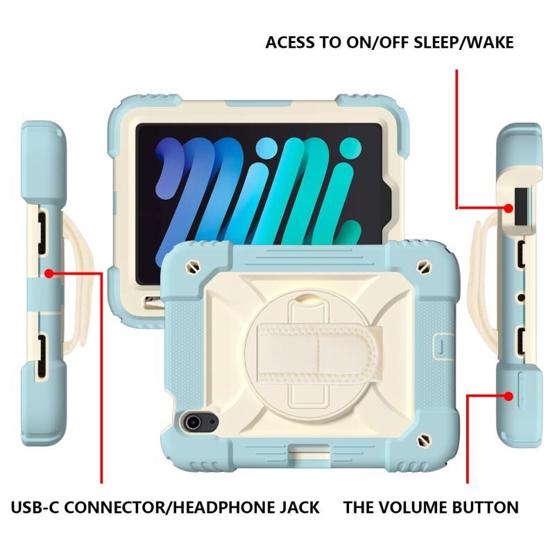 For iPad mini 2024 / mini 6 Shockproof PC + Silicone Combination Tablet Case with Holder & Hand Strap & Shoulder Strap(Ice Blue)