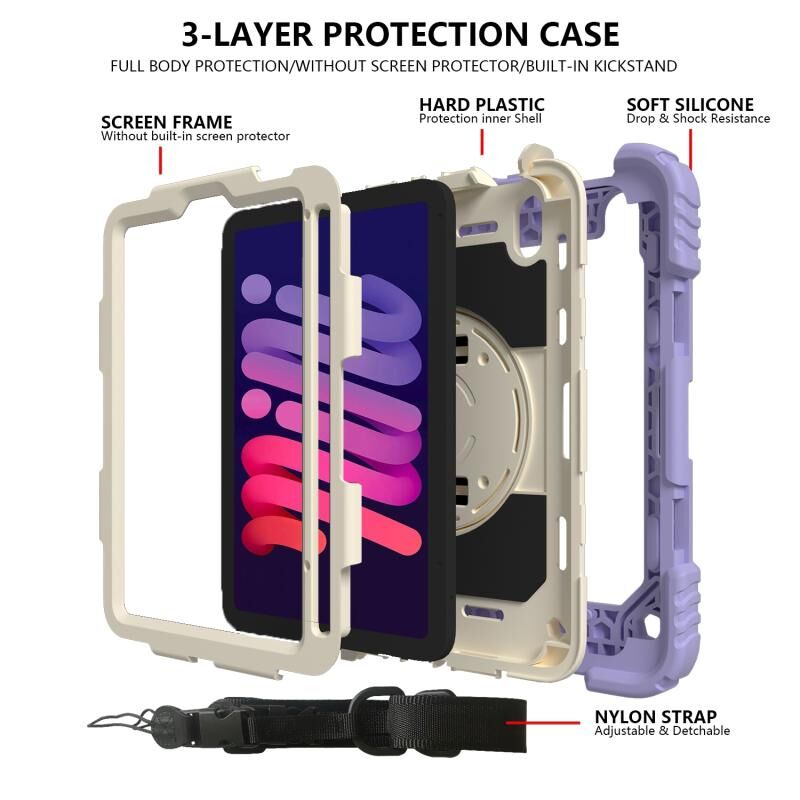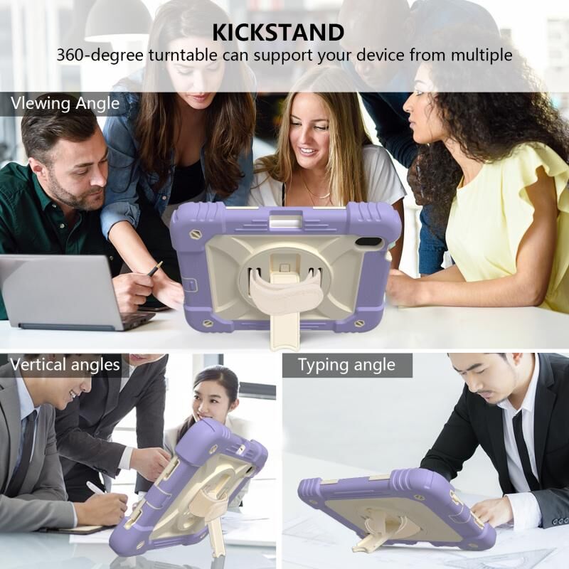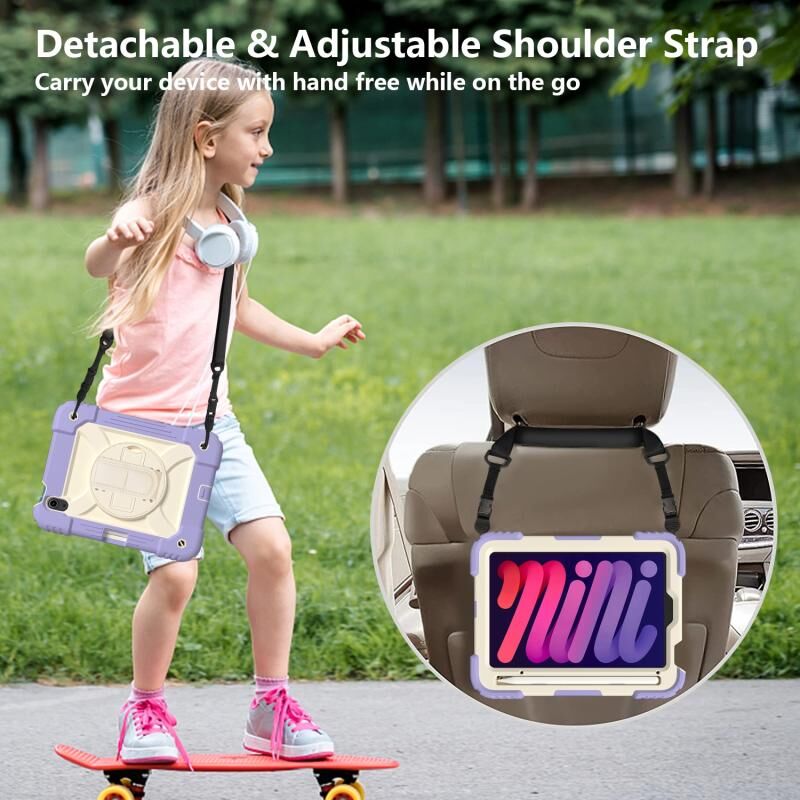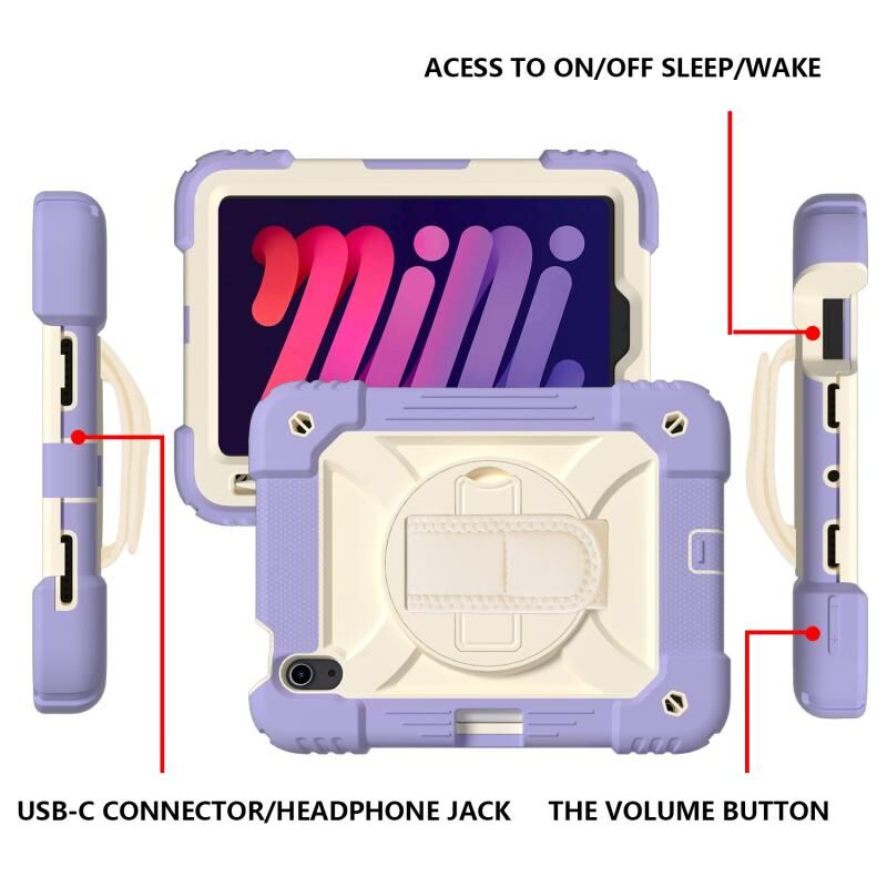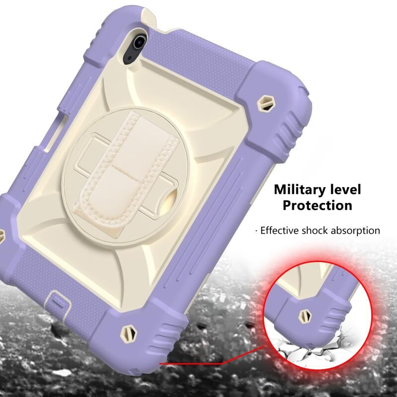 For iPad mini 2024 / mini 6 Shockproof PC + Silicone Combination Tablet Case with Holder & Hand Strap & Shoulder Strap(Purple)