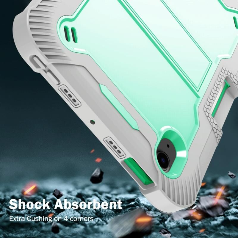 For iPad mini 2024 / mini 6 Silicone + PC Shockproof Protective Tablet Case with Holder(Gray + Green)