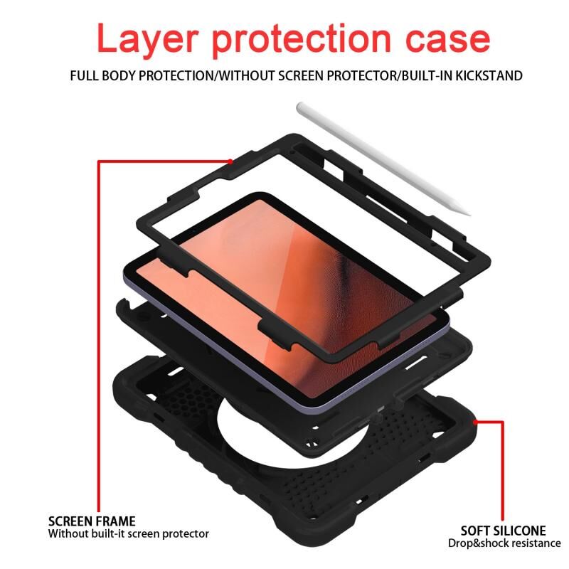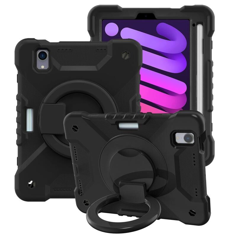 For iPad mini 2024 / mini 6 Silicone + PC Tablet Case with Strap & Holder & Pen Slot(Black)