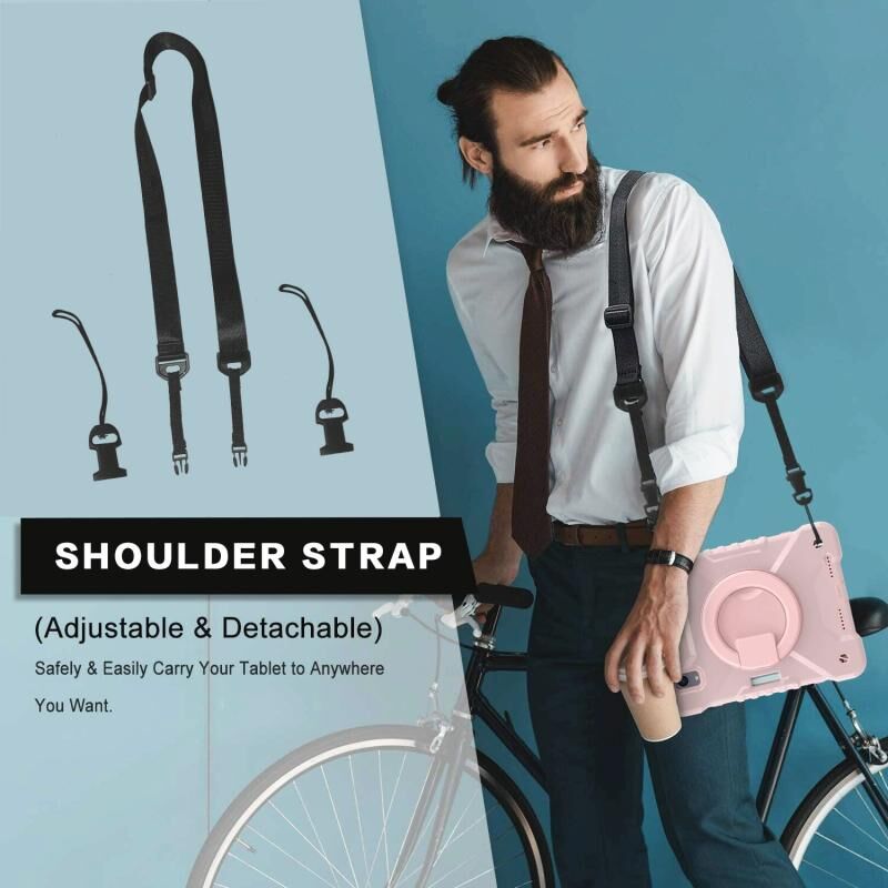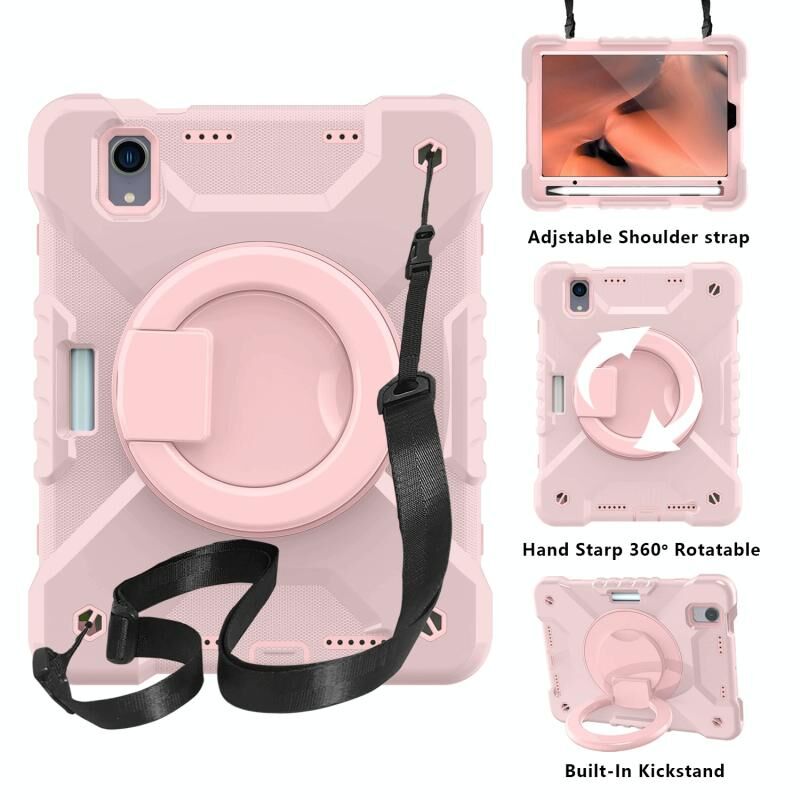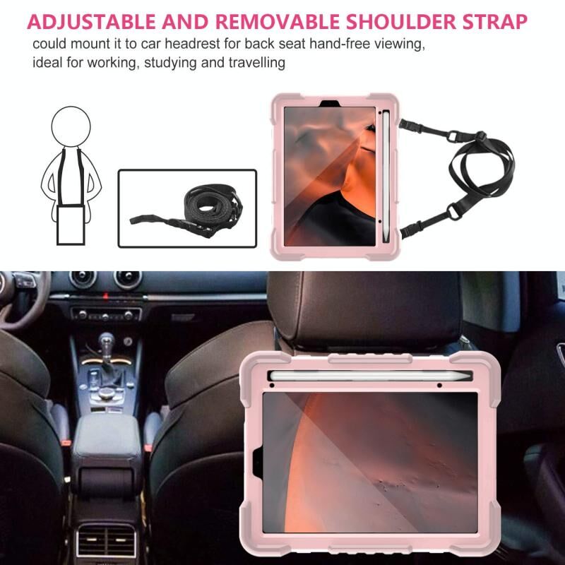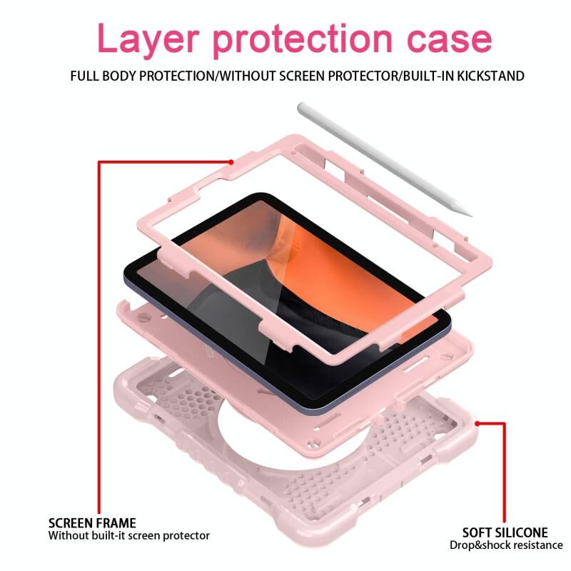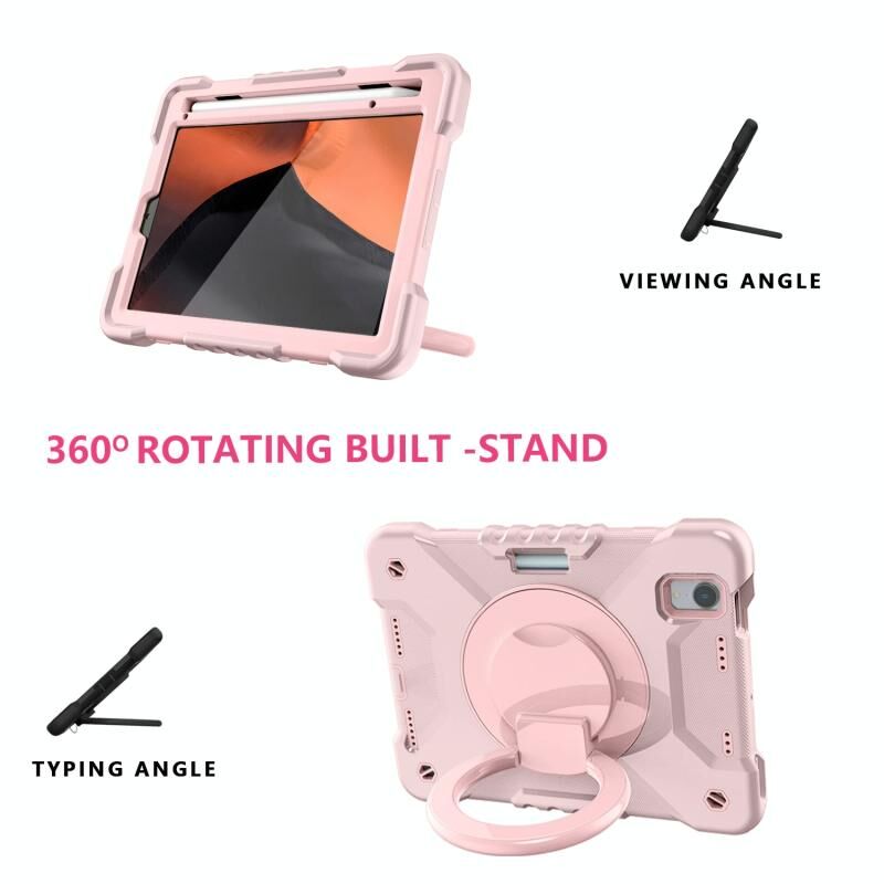 For iPad mini 2024 / mini 6 Silicone + PC Tablet Case with Strap & Holder & Pen Slot(Rose Gold)