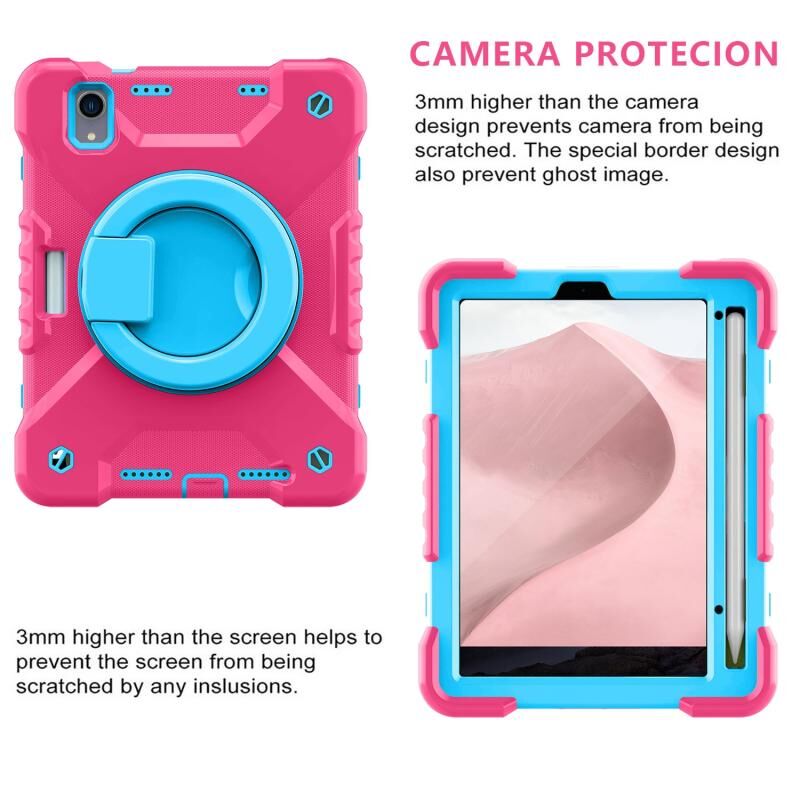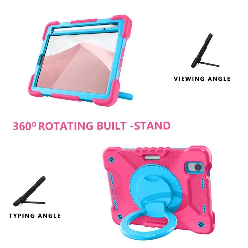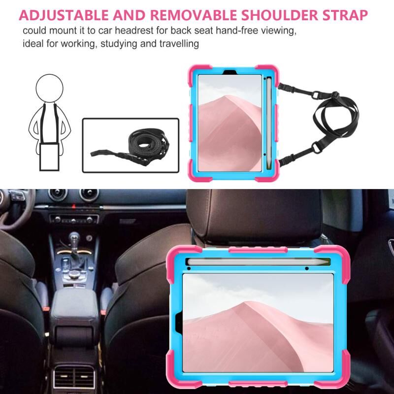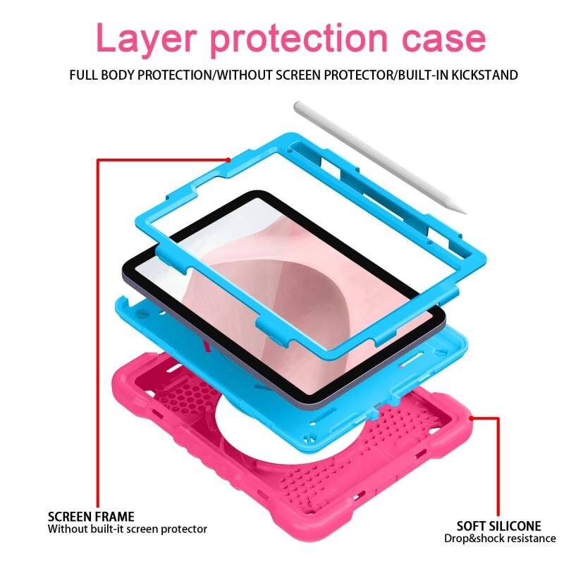 For iPad mini 2024 / mini 6 Silicone + PC Tablet Case with Strap & Holder & Pen Slot(Rose Red + Blue)