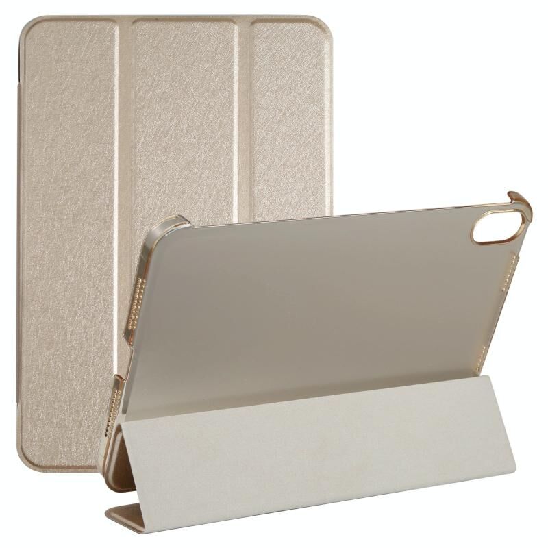 For iPad mini 2024 / mini 6 Silk Texture Three-fold Horizontal Flip Leather Tablet Case with Holder(Gold)