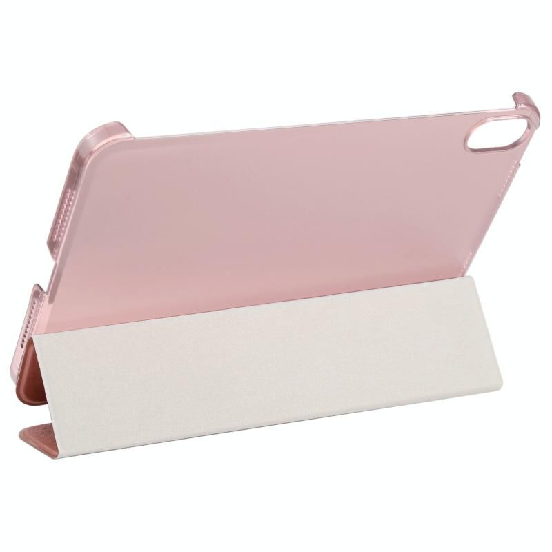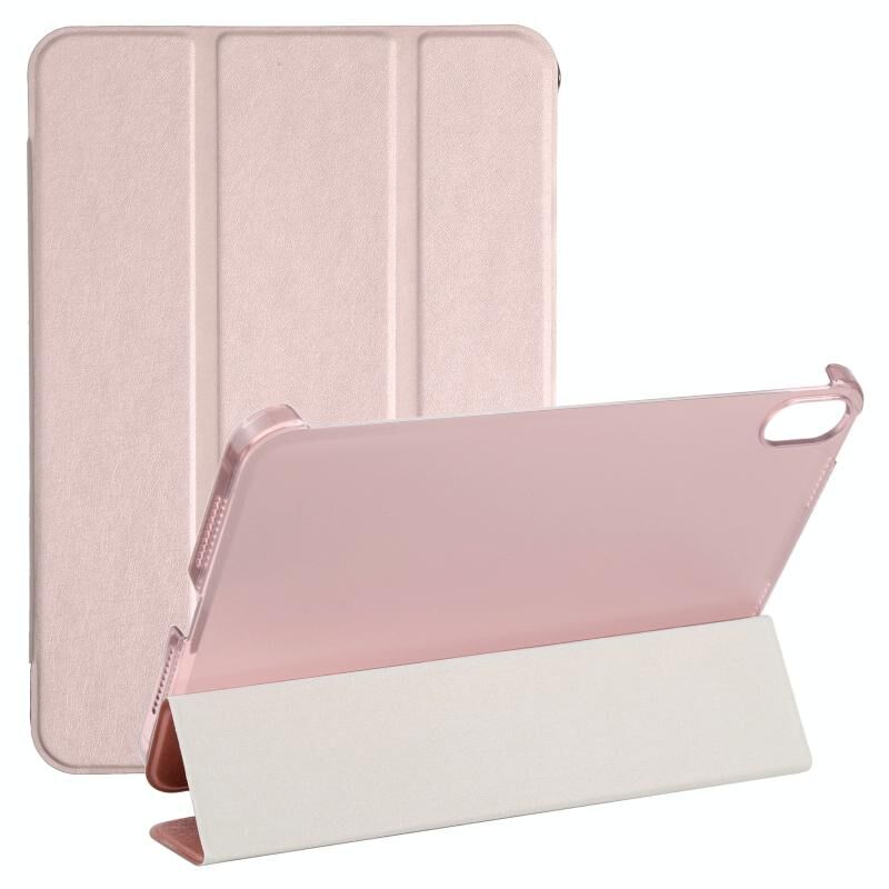 For iPad mini 2024 / mini 6 Silk Texture Three-fold Horizontal Flip Leather Tablet Case with Holder(Rose Gold)