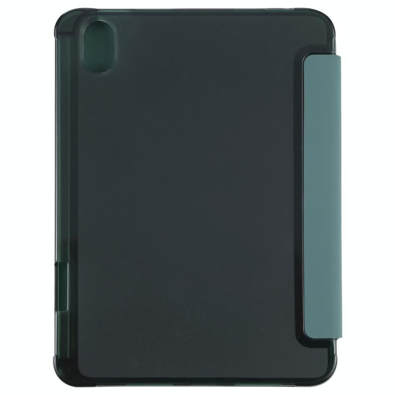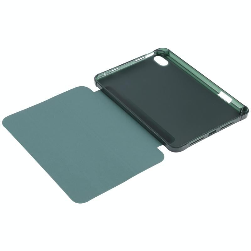 For iPad mini 2024 / mini 6 TPU Transparent Back Cover Horizontal Flip Leather Tablet Case with Three-folding Holder & Pen Slot(Dark Green)