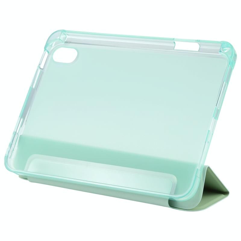 For iPad mini 2024 / mini 6 TPU Transparent Back Cover Horizontal Flip Leather Tablet Case with Three-folding Holder & Pen Slot(Green)