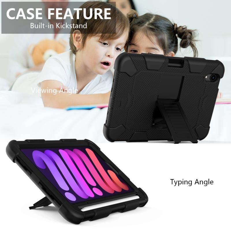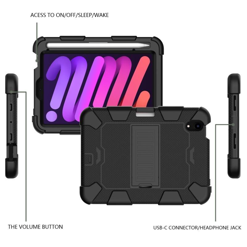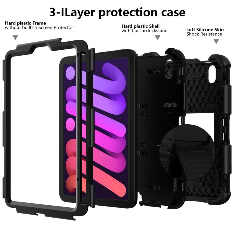 For iPad mini 2024 / mini 6 Two-Color Robot Shockproof Silicone + PC Protective Tablet Case with Holder & Pen Slot(Black)
