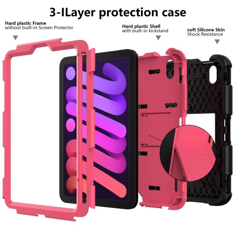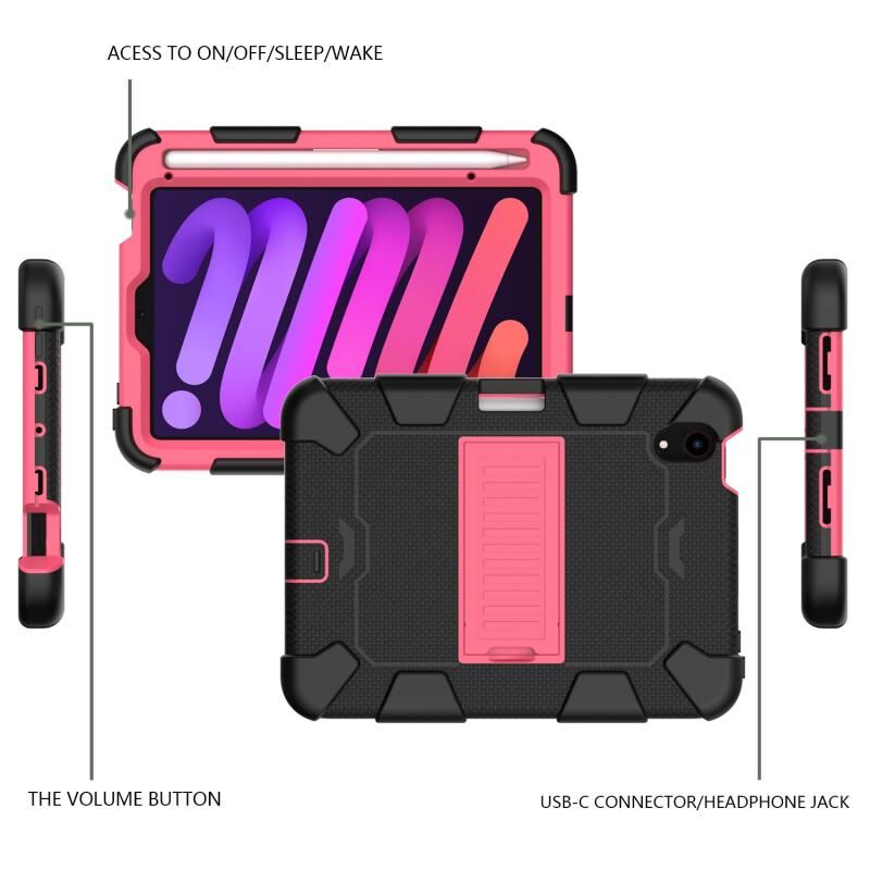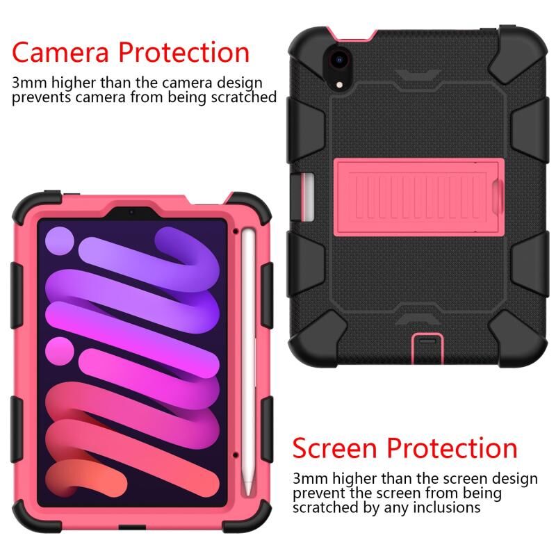 For iPad mini 2024 / mini 6 Two-Color Robot Shockproof Silicone + PC Protective Tablet Case with Holder & Pen Slot(Black + Rose Red)