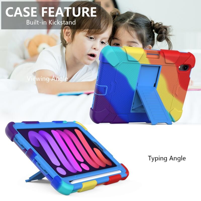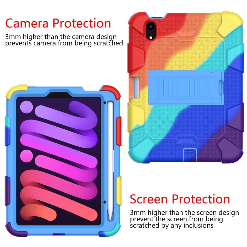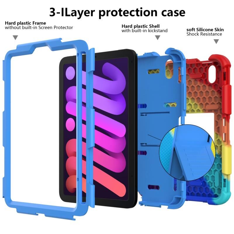 For iPad mini 2024 / mini 6 Two-Color Robot Shockproof Silicone + PC Protective Tablet Case with Holder & Pen Slot(Colorful + Blue)