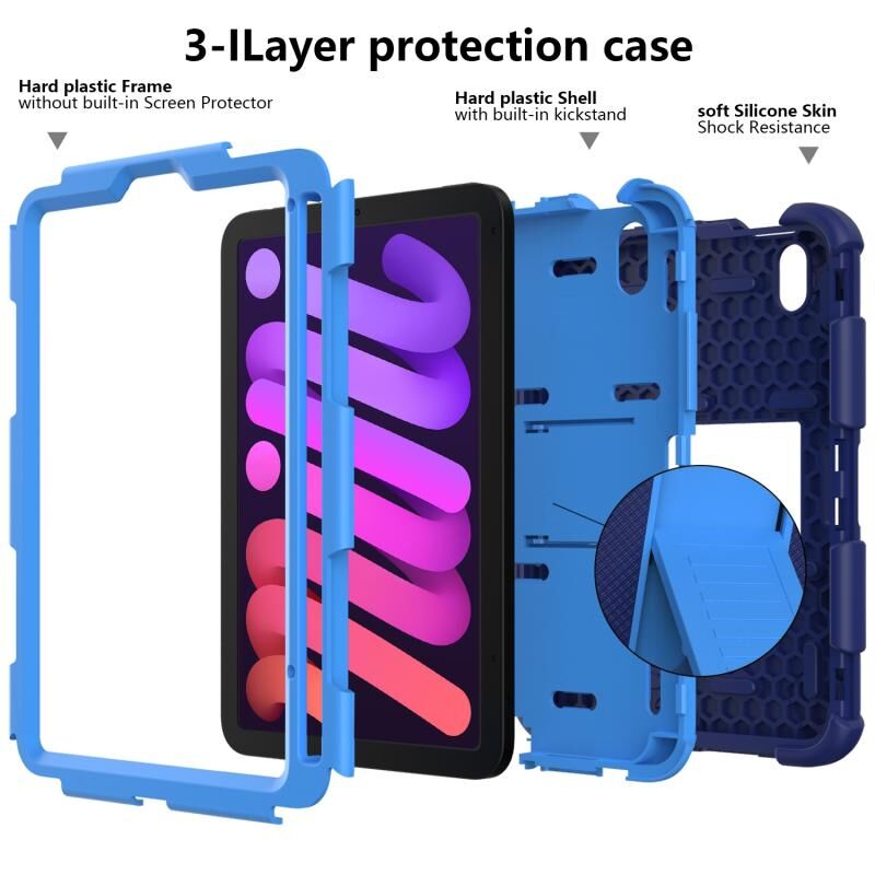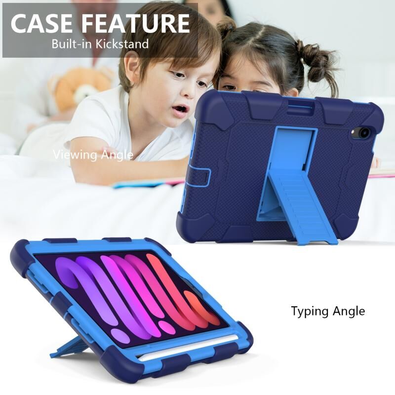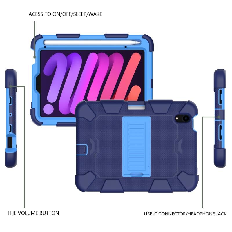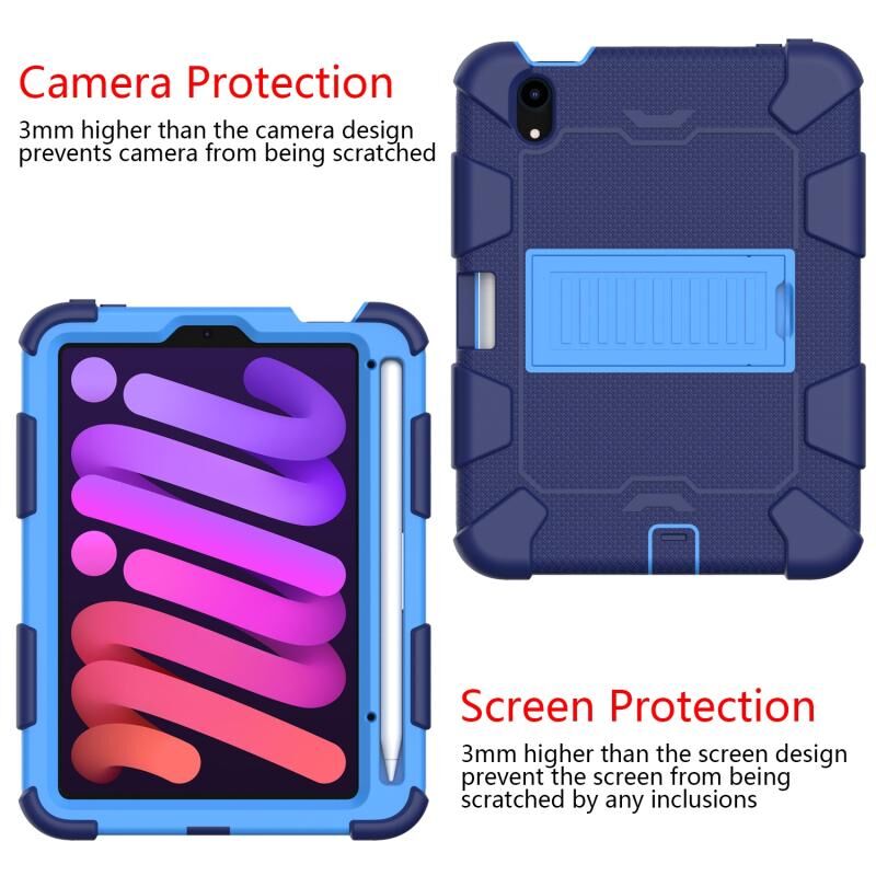 For iPad mini 2024 / mini 6 Two-Color Robot Shockproof Silicone + PC Protective Tablet Case with Holder & Pen Slot(Navy Blue + Blue)