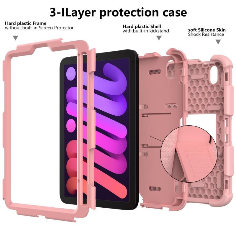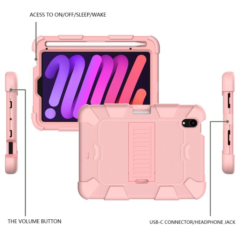 For iPad mini 2024 / mini 6 Two-Color Robot Shockproof Silicone + PC Protective Tablet Case with Holder & Pen Slot(Rose Gold)