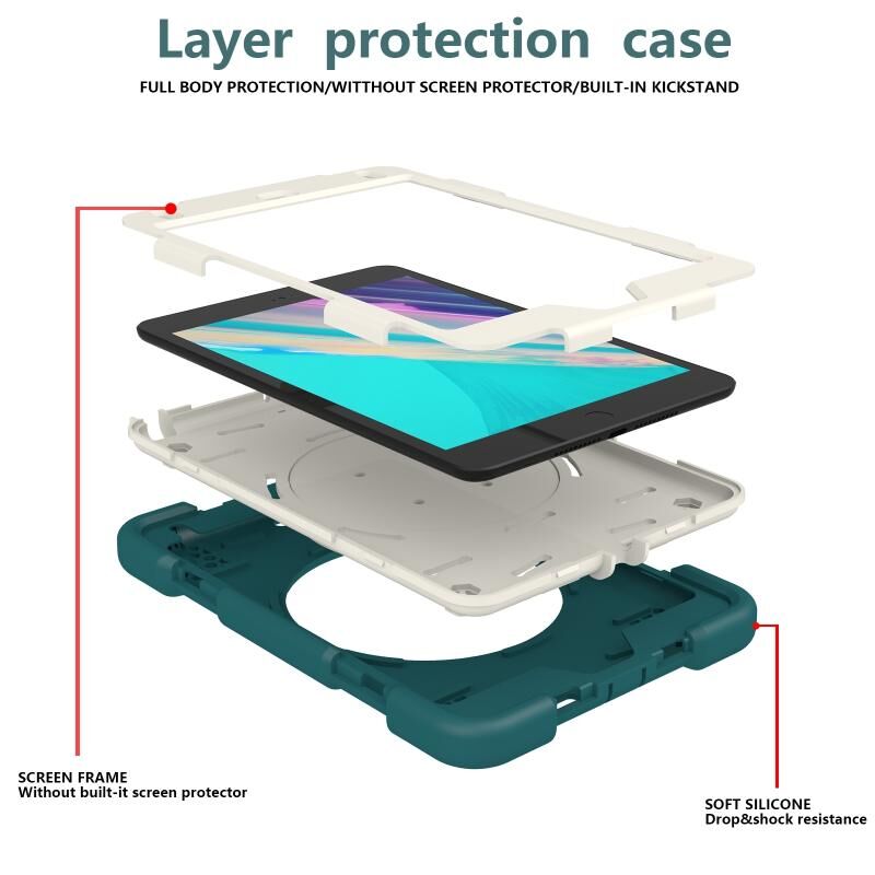 Θήκη tablet για iPad mini 4 2015/mini 2019 από σιλικόνη + PC, πλήρης προστασία σώματος, με βάση στήριξης & λουρί (Σκούρο Πράσινο)