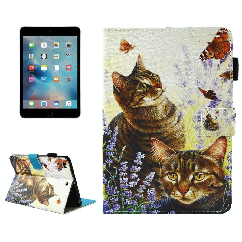 For iPad mini 4 / 3 / 2 / 1 Cats and Butterflies Pattern Horizontal Flip Leather Case with Holder & Wallet & Card Slots & Sleep / Wake-up Function & Pen Slot