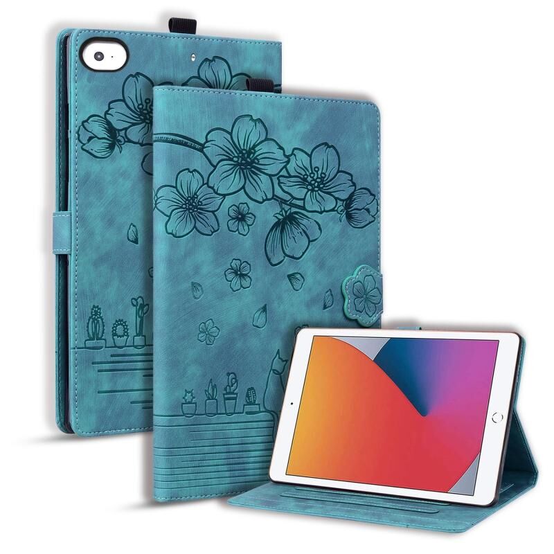 Θήκη ταμπλέτας από δέρμα με ανάγλυφο σχέδιο κινούμενων σχεδίων Sakura Cat για iPad mini 5 / 4 / 3 / 2 / 1 (Πράσινο)