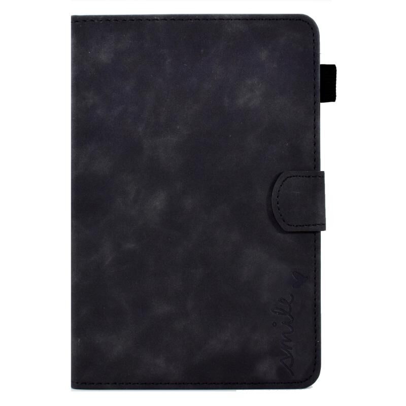 For iPad mini 5/4/3/2/1 Embossed Smile Flip Tablet Leather Smart Case(Black)