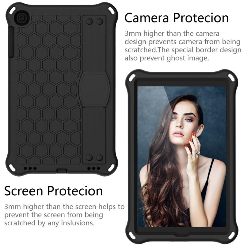 Για iPad mini 5 / 4 / 3 / 2 /1, Προστατευτικό Κέλυφος με Σχεδιασμό Κηρήθρας από EVA + PC και Ενίσχυση στις Γωνίες, με Λουρί (Μαύρο+Μαύρο)