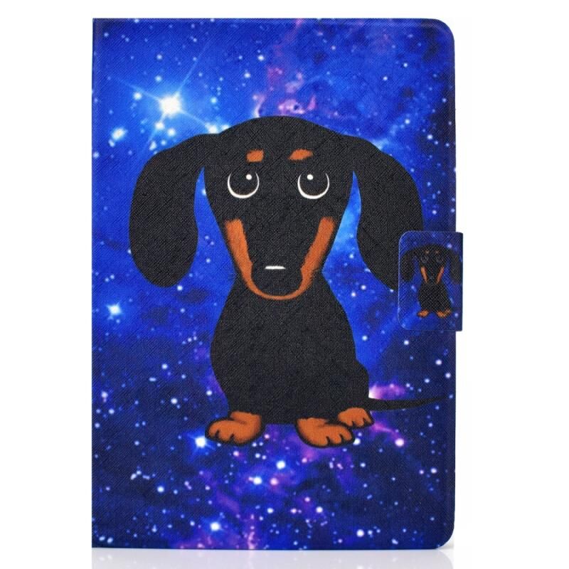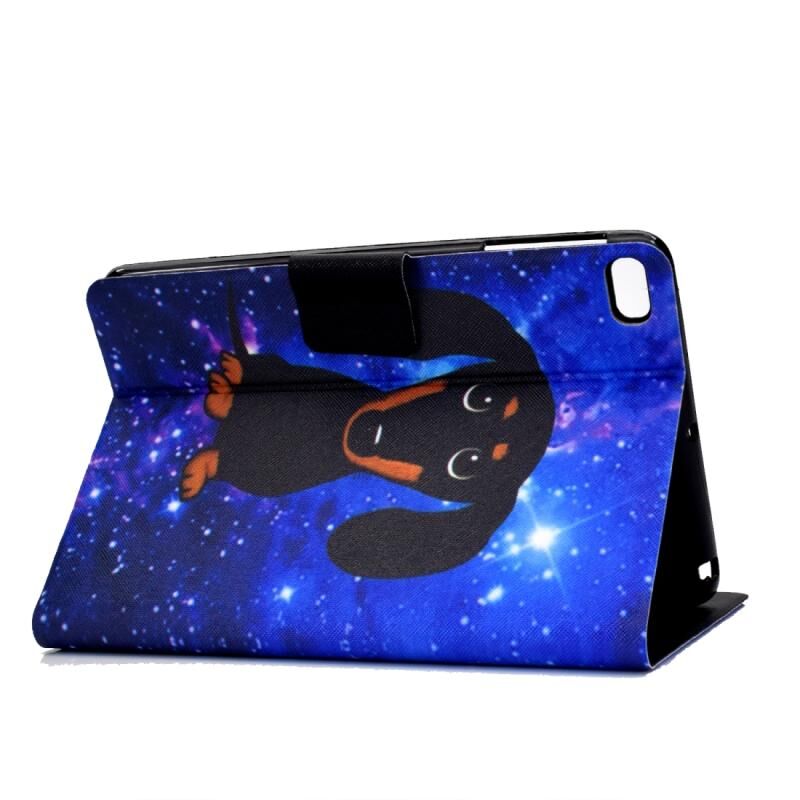 Θήκη δέρματος με οριζόντιο άνοιγμα για iPad mini 5 / 4 / 3 / 2 / 1, κατασκευασμένη από TPU με θερμική εκτύπωση, με βάση στήριξης & θήκη για κάρτες & λειτουργία αυτόματης αφύπνισης / ύπνου (Μικρός Μαύρος Σκύλος)