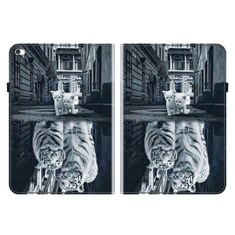 For iPad mini 5 / 4 / 3 / 2 Crystal Texture Painted Leather Smart Tablet Case(Cat Reflection Tiger)