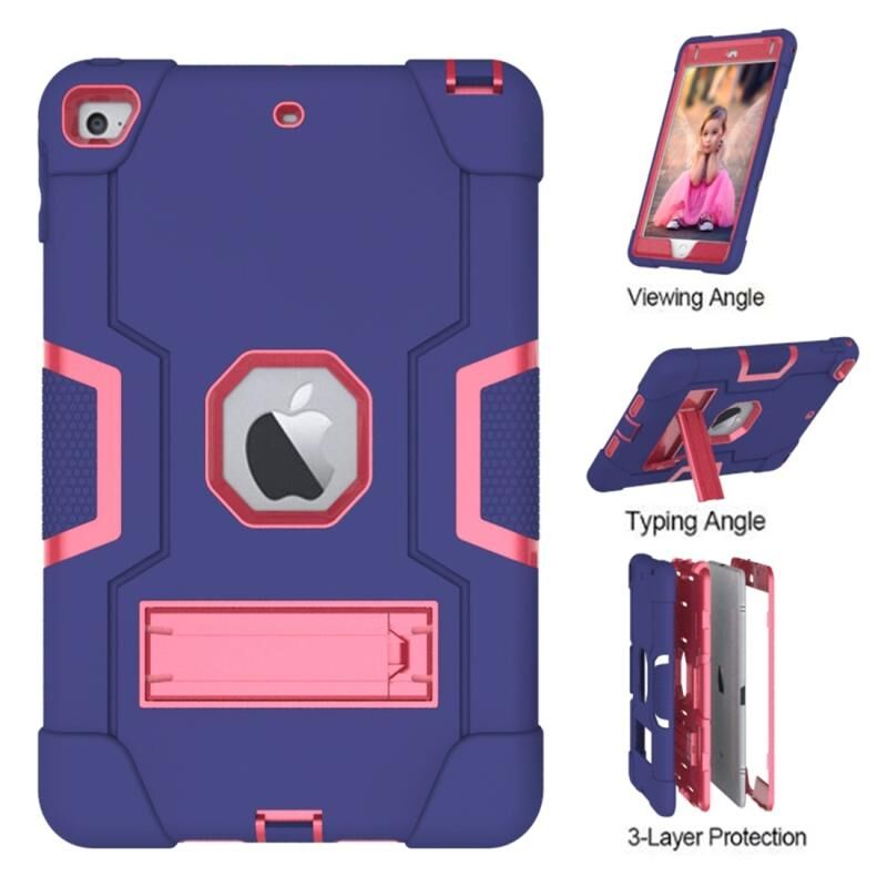 Θήκη για iPad Mini 5 / 4 Συνδυασμός Σιλικόνης + PC σε Αντίθετα Χρώματα με Στήριξη (Μαύρο + Μπλε)