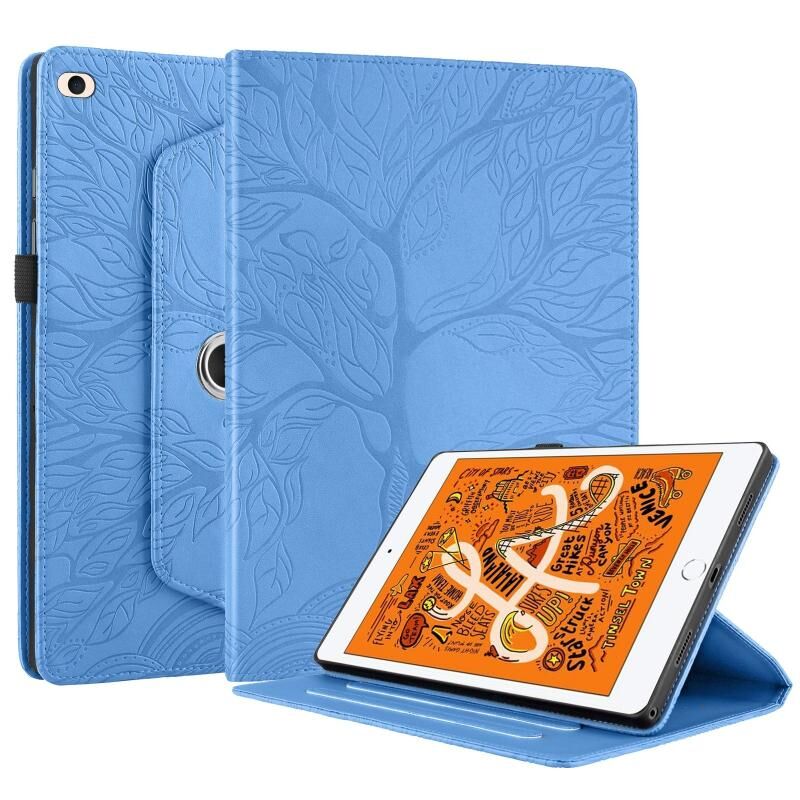 Θήκη Smart Tablet από Δέρμα με ανάγλυφο σχέδιο Δέντρου και Περιστροφή για iPad mini 5 / mini 4 / mini 3 (Μπλε)