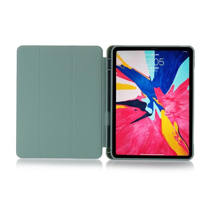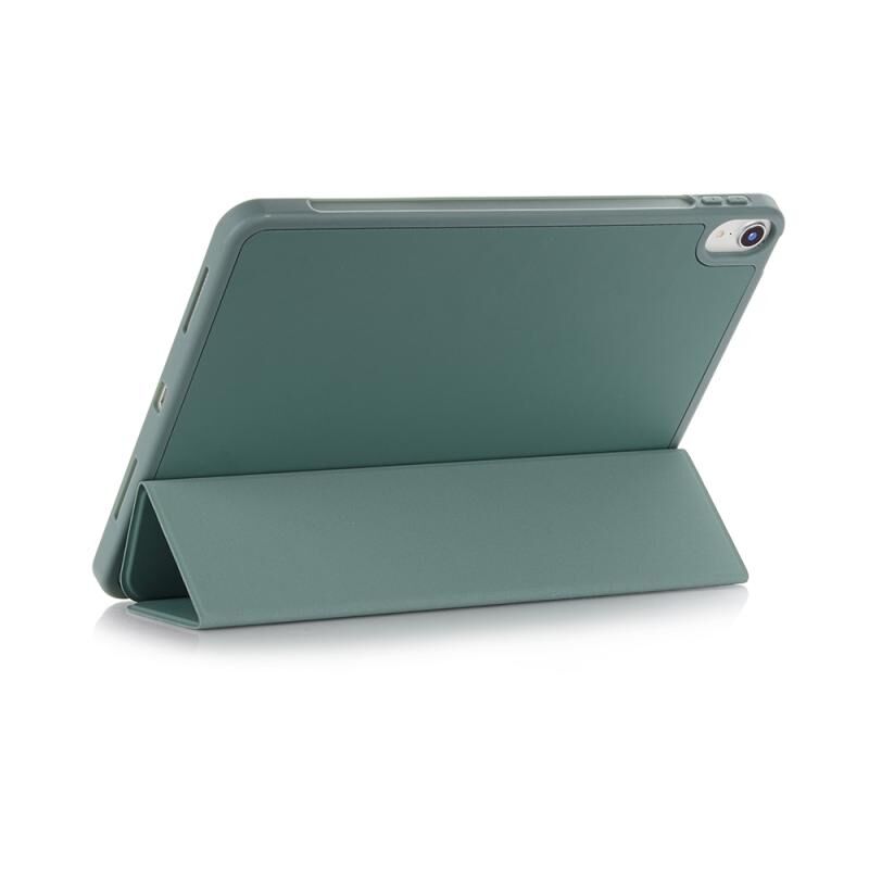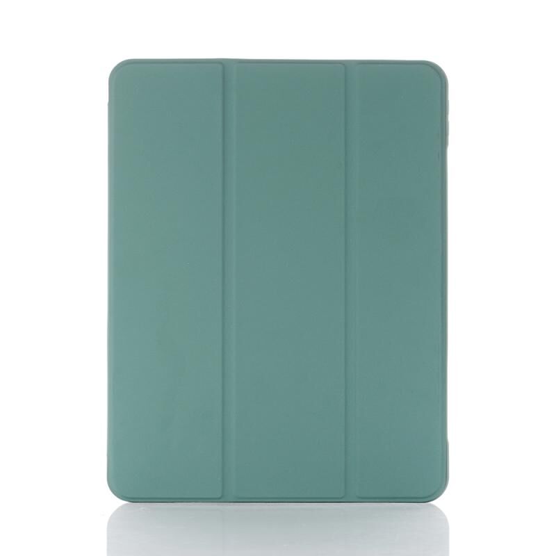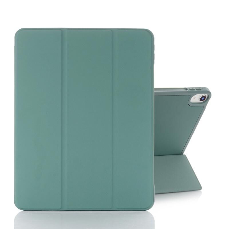 For iPad mini 6 Back Sticker Skin Feel Horizontal Flip Leather Tablet Case with Tri-fold Holder(Dark Green)
