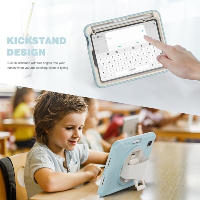 For iPad mini 6 / mini 2024 360 Degree Rotation PC + TPU Protective Tablet Case with Holder & Hand-strap(Ice Blue)